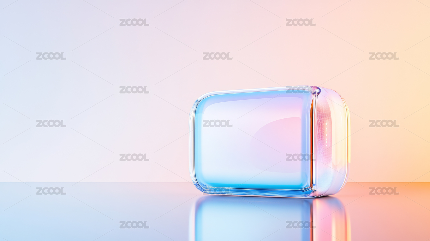 渐变背景前的金属质感方形物体