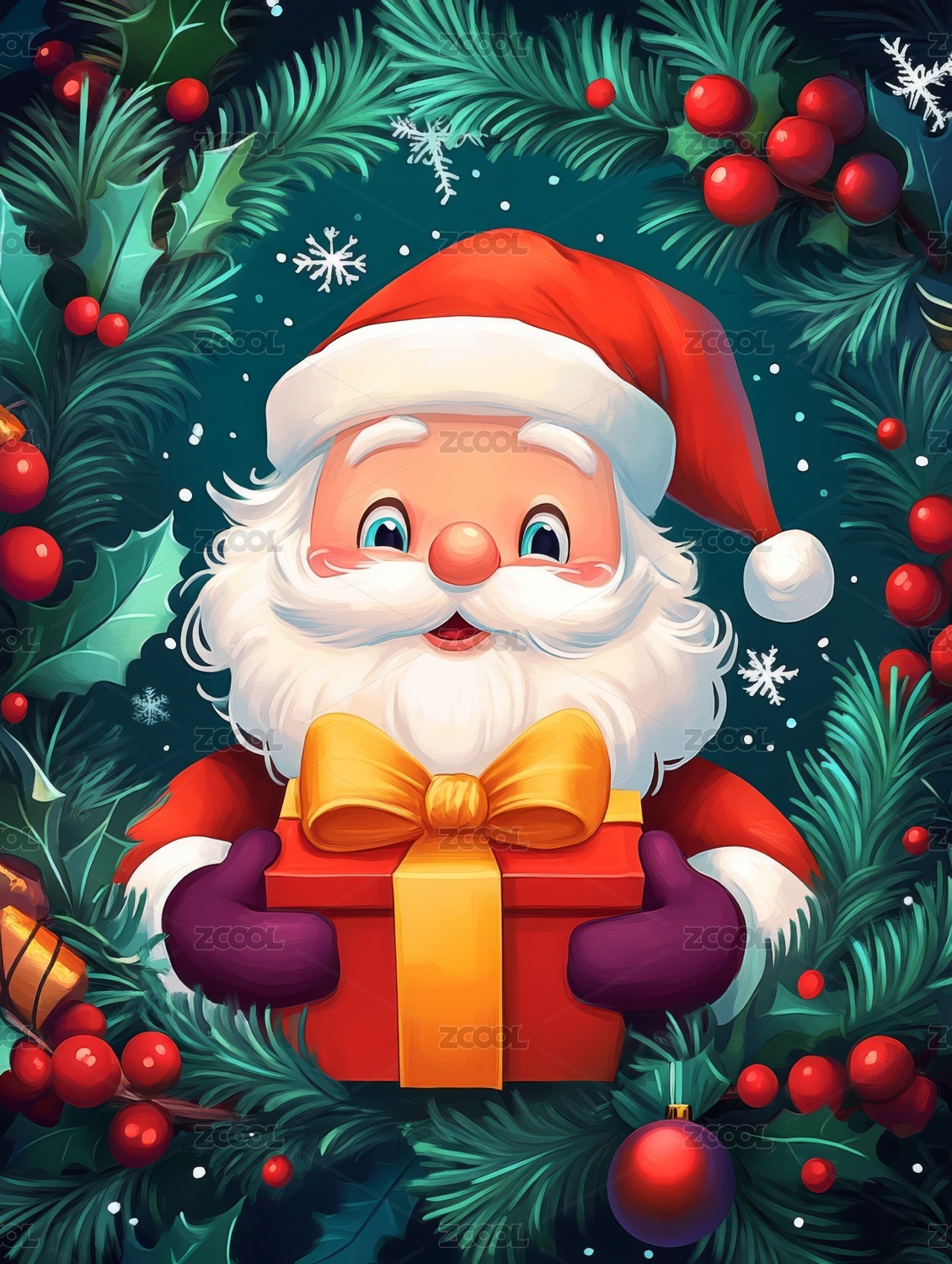 圣诞节装饰背景圣诞老人圣诞树冬季雪花插画