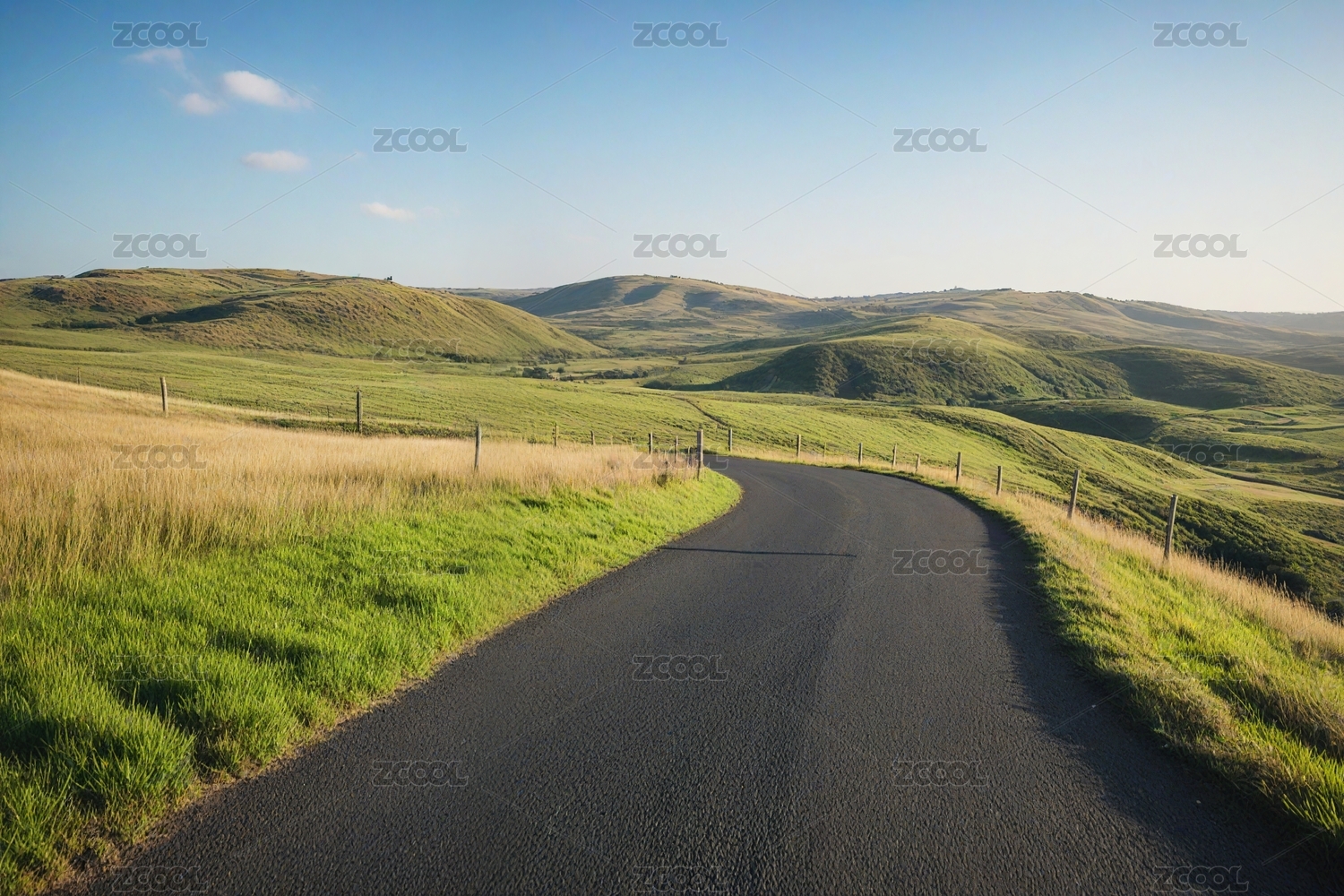 中国新疆特克斯阿克塔斯草原上公路弯道