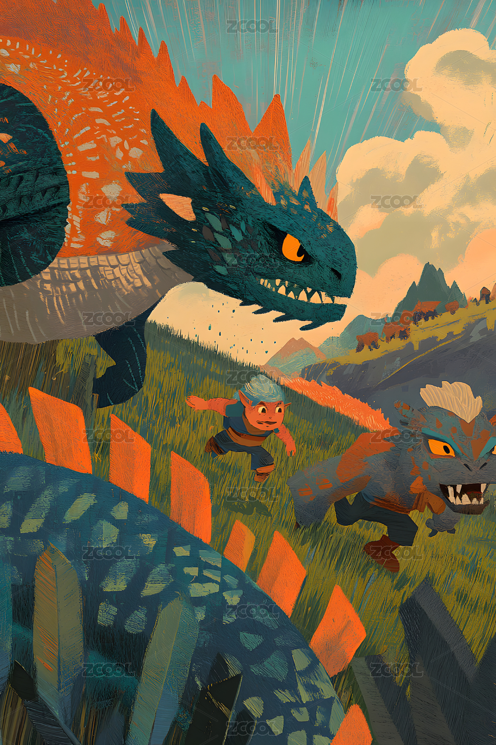 彩色,温暖,创意,插画,橙色,肌理,短线条,线条,儿童