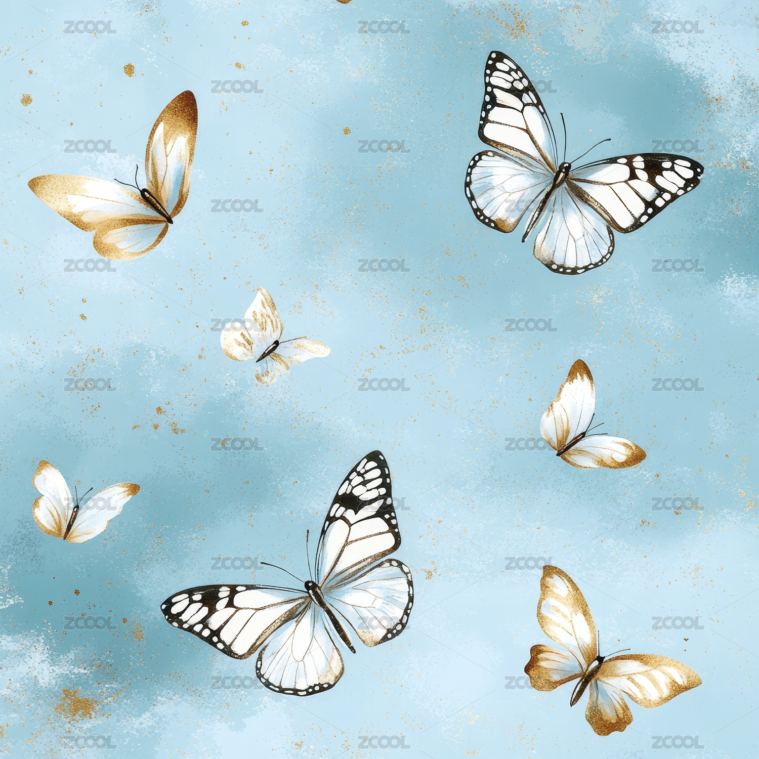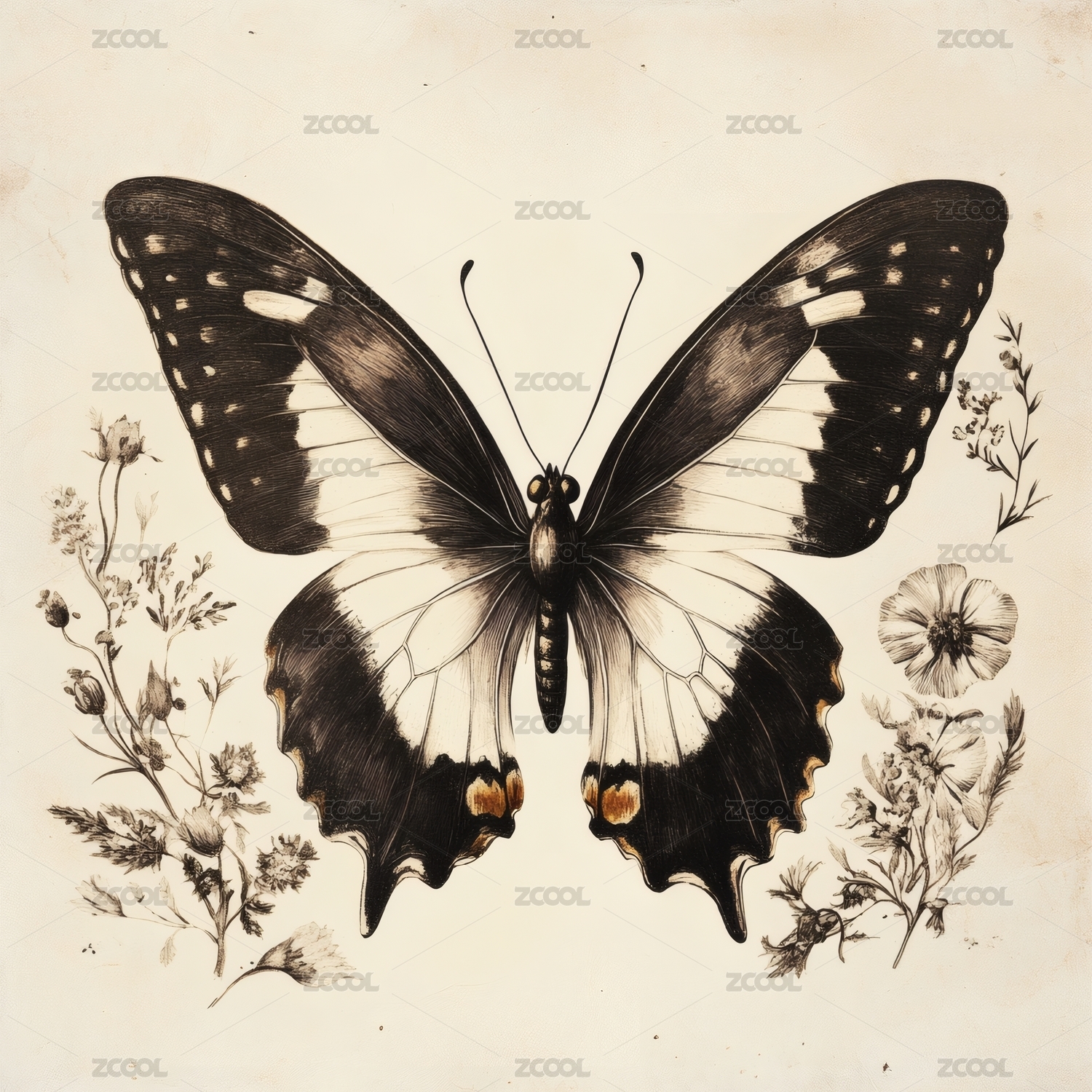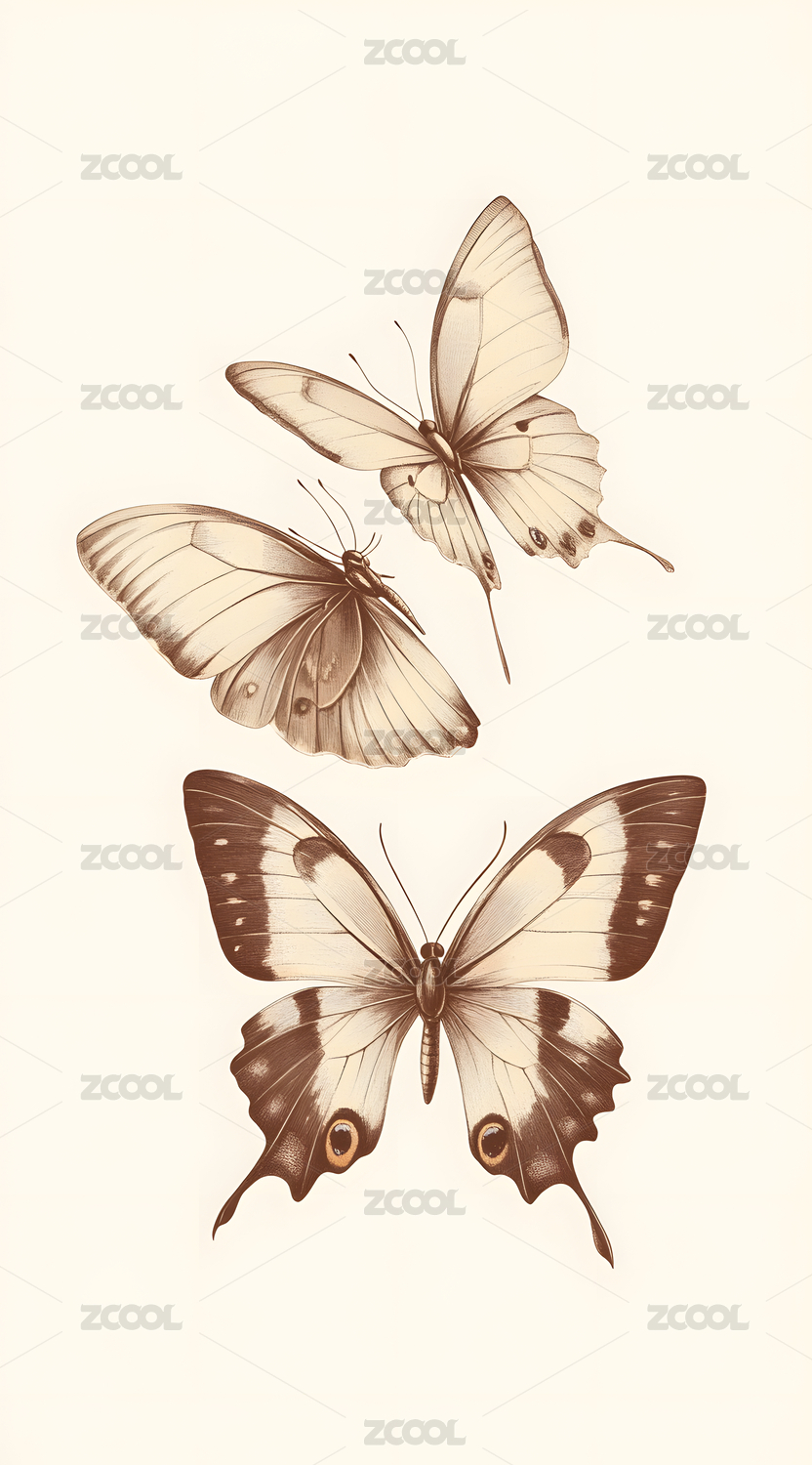 唯美梦幻展翅飞翔的蝴蝶图案印花插画