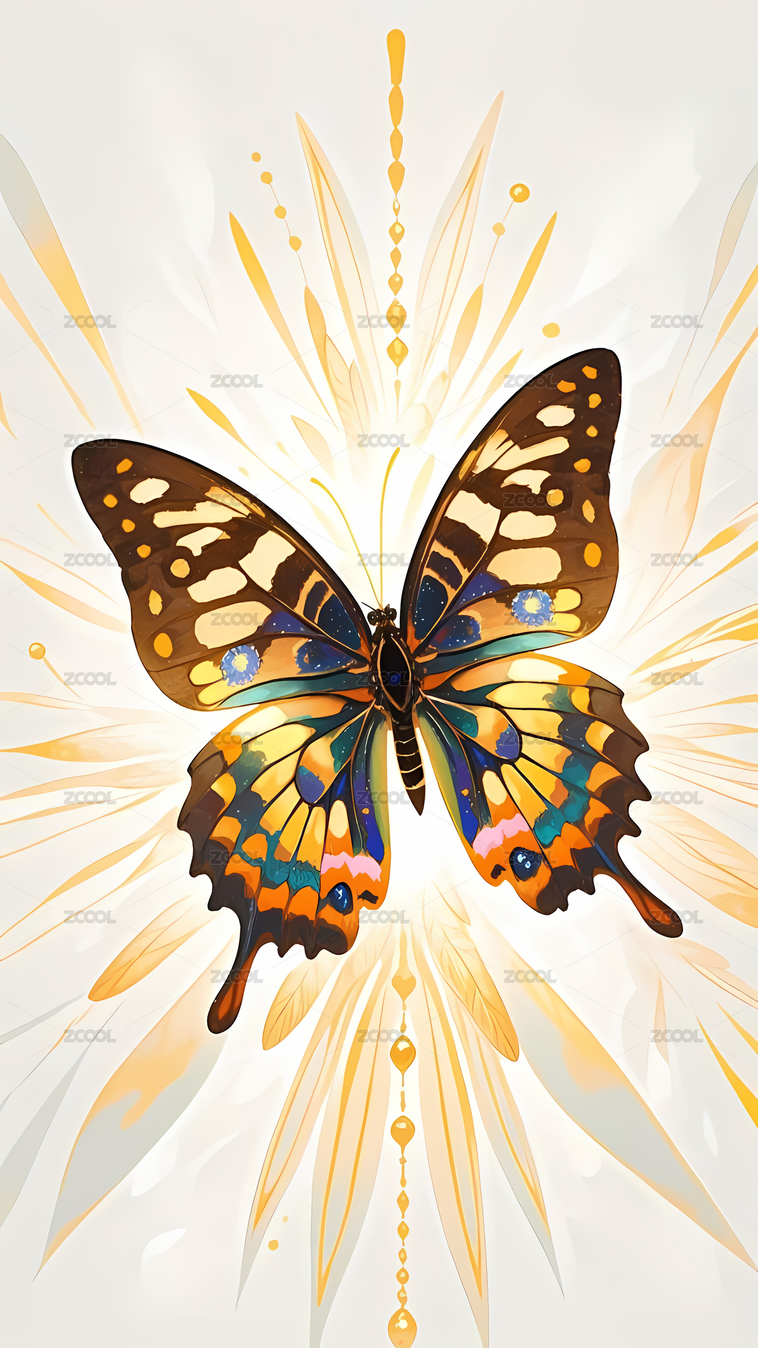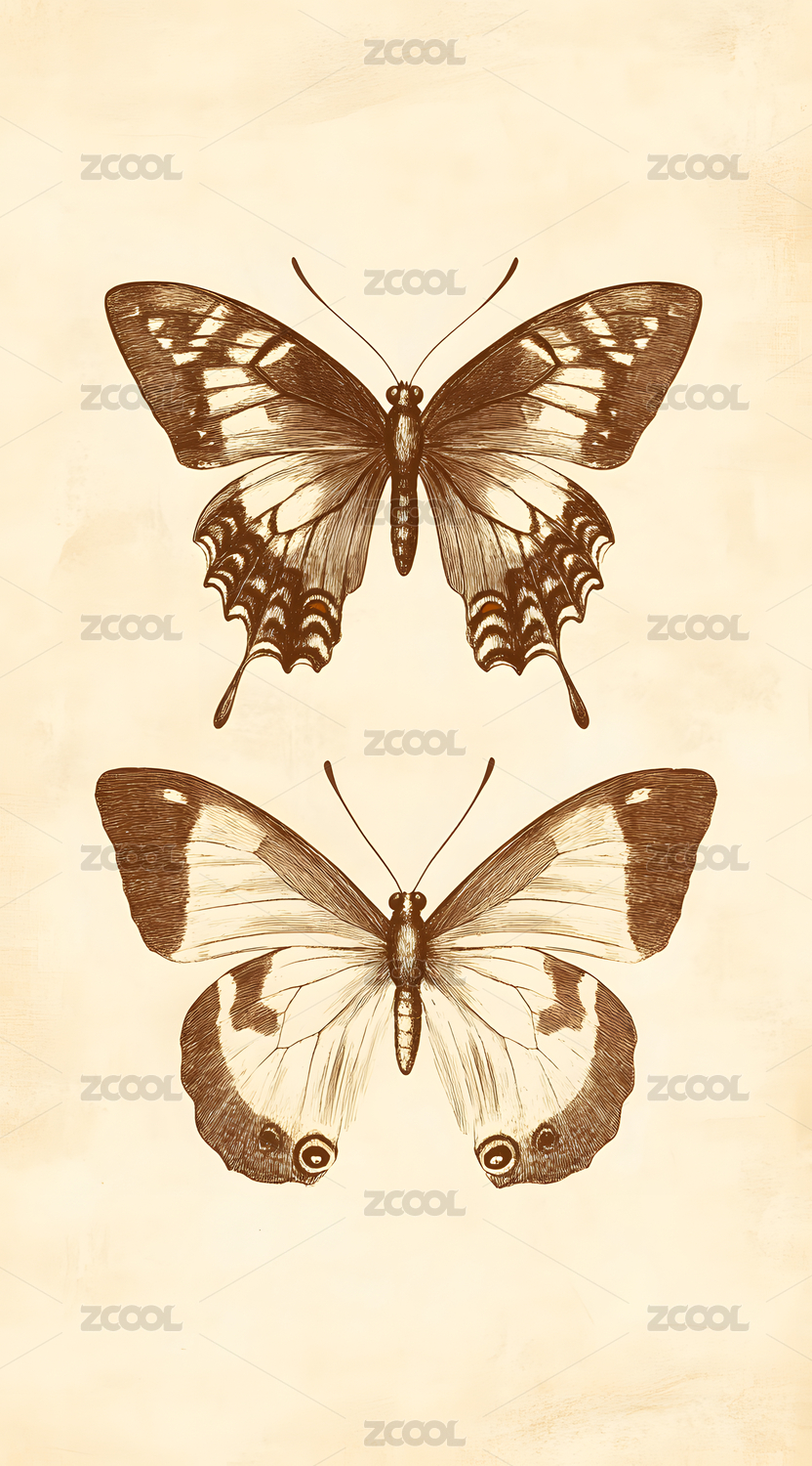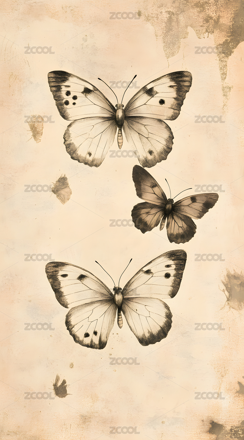 唯美梦幻展翅飞翔的蝴蝶图案印花插画