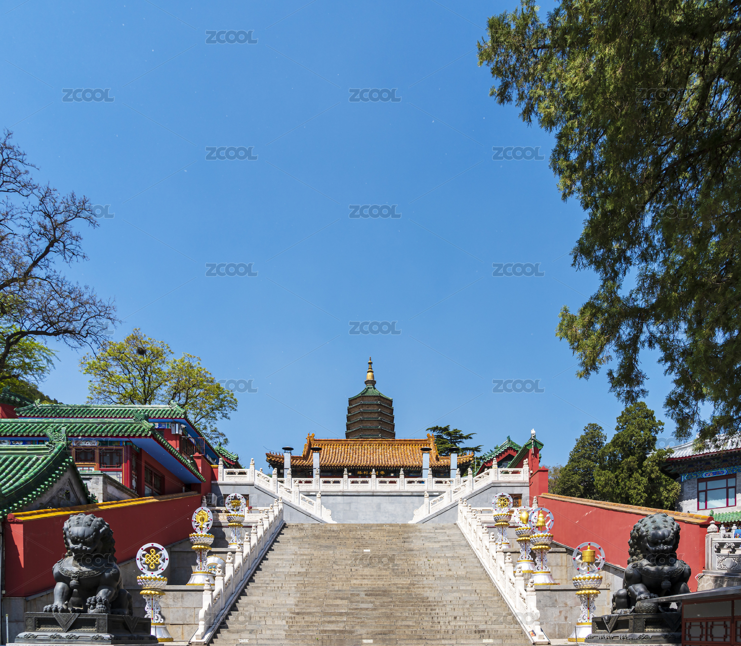蓝天下北京八大处春日灵光寺风光