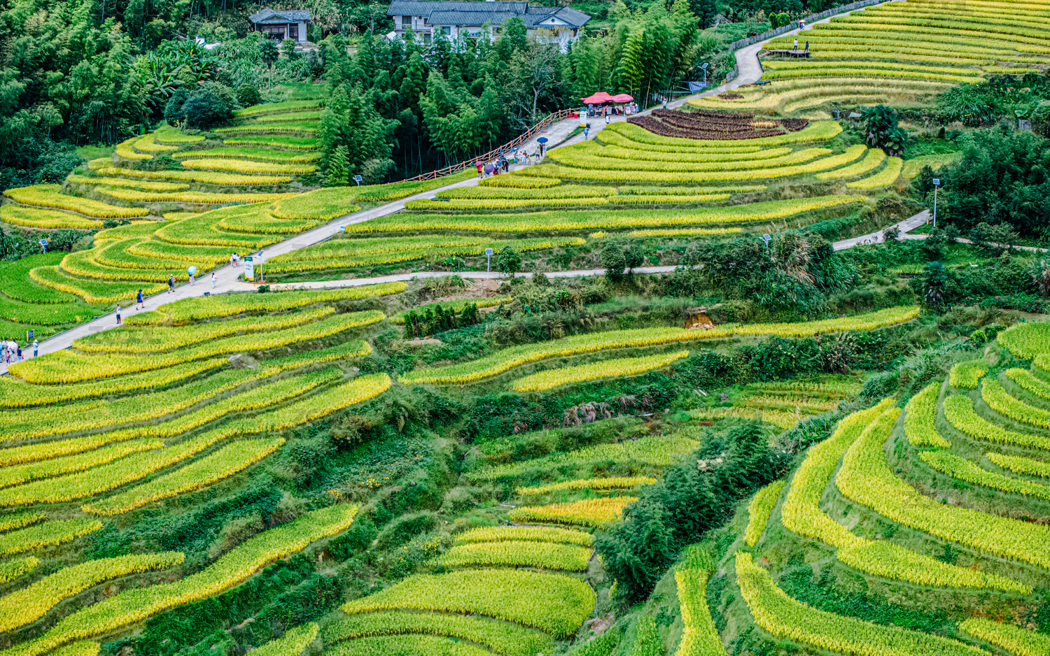 江西赣州崇义县上堡梯田稻谷金黄绚烂如画