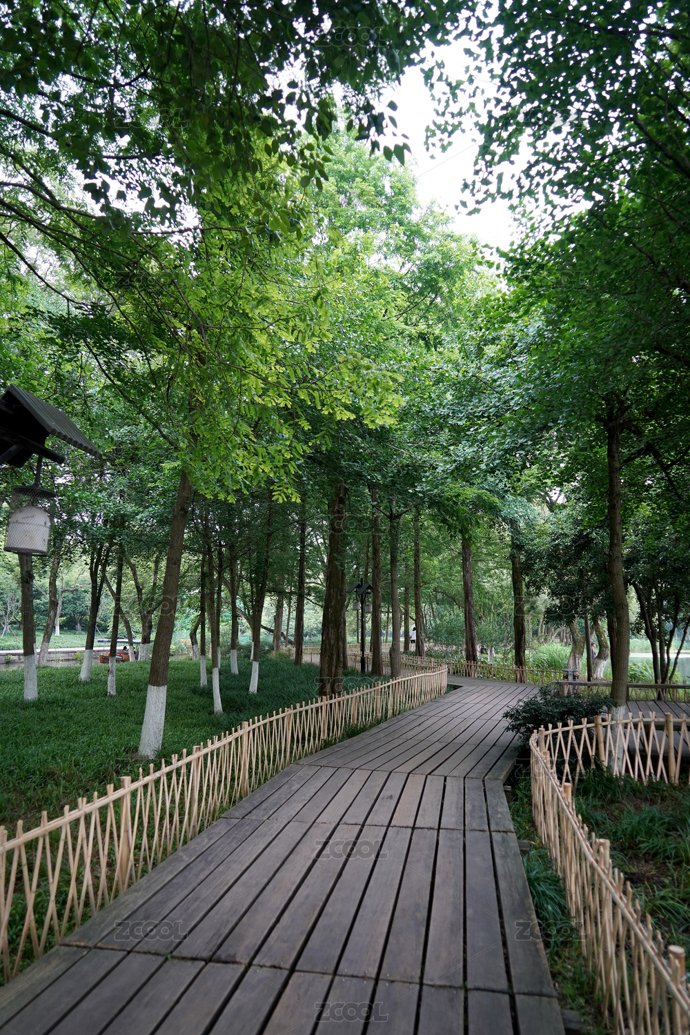 珠海黄杨河湿地公园里的水杉林,林中有汀步