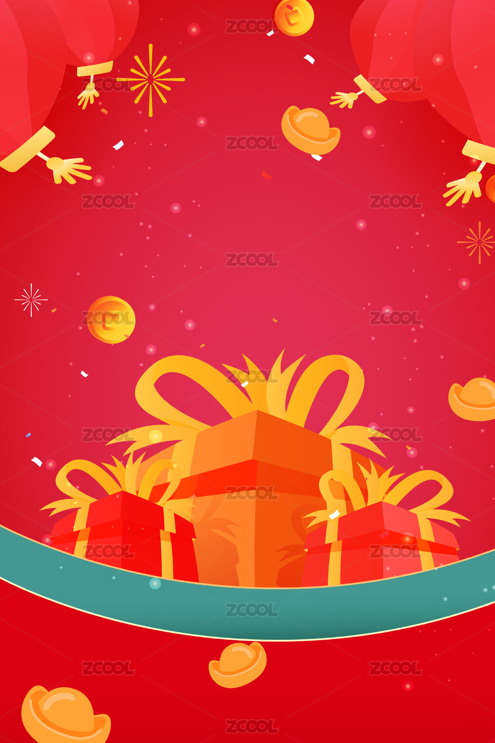 红色礼盒红包金币活动奖励