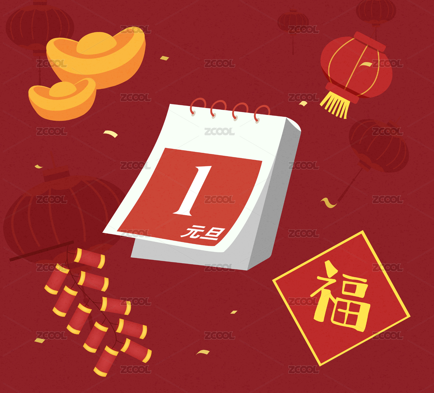 元旦春节新年民俗插画