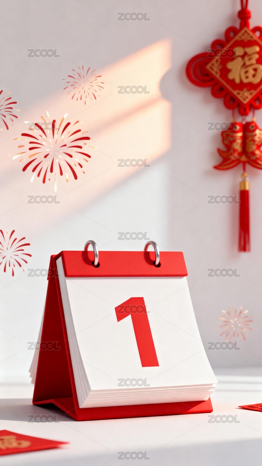 3d新年春节倒计时红金色喜庆插画