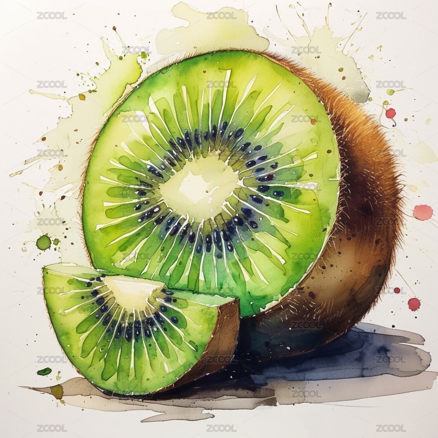 插画,水彩风,维生素,健康,自然,水果,果实,多汁,猕猴桃