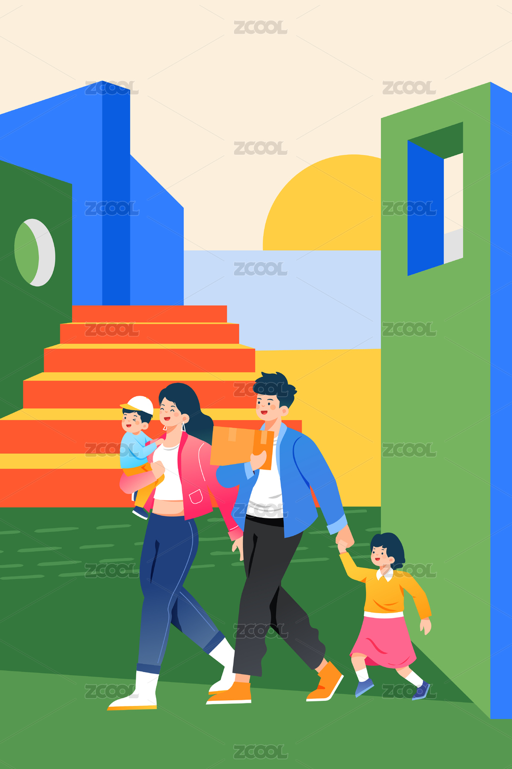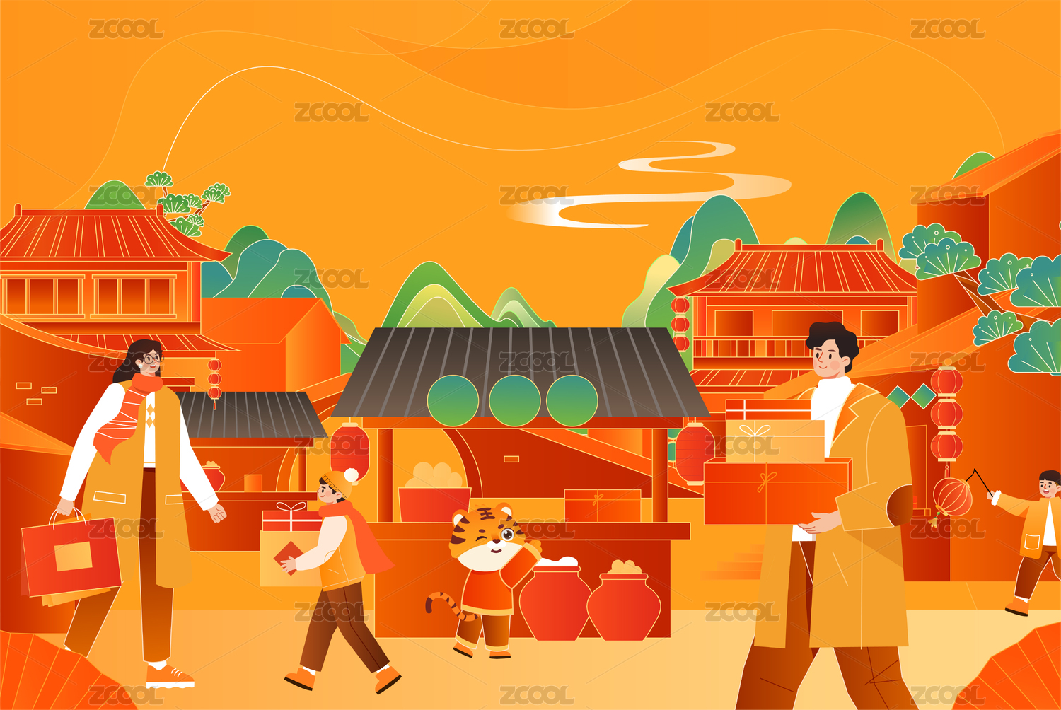 矢量,卡通,渐变,扁平,插画,插图,节日,春节,新年,春运