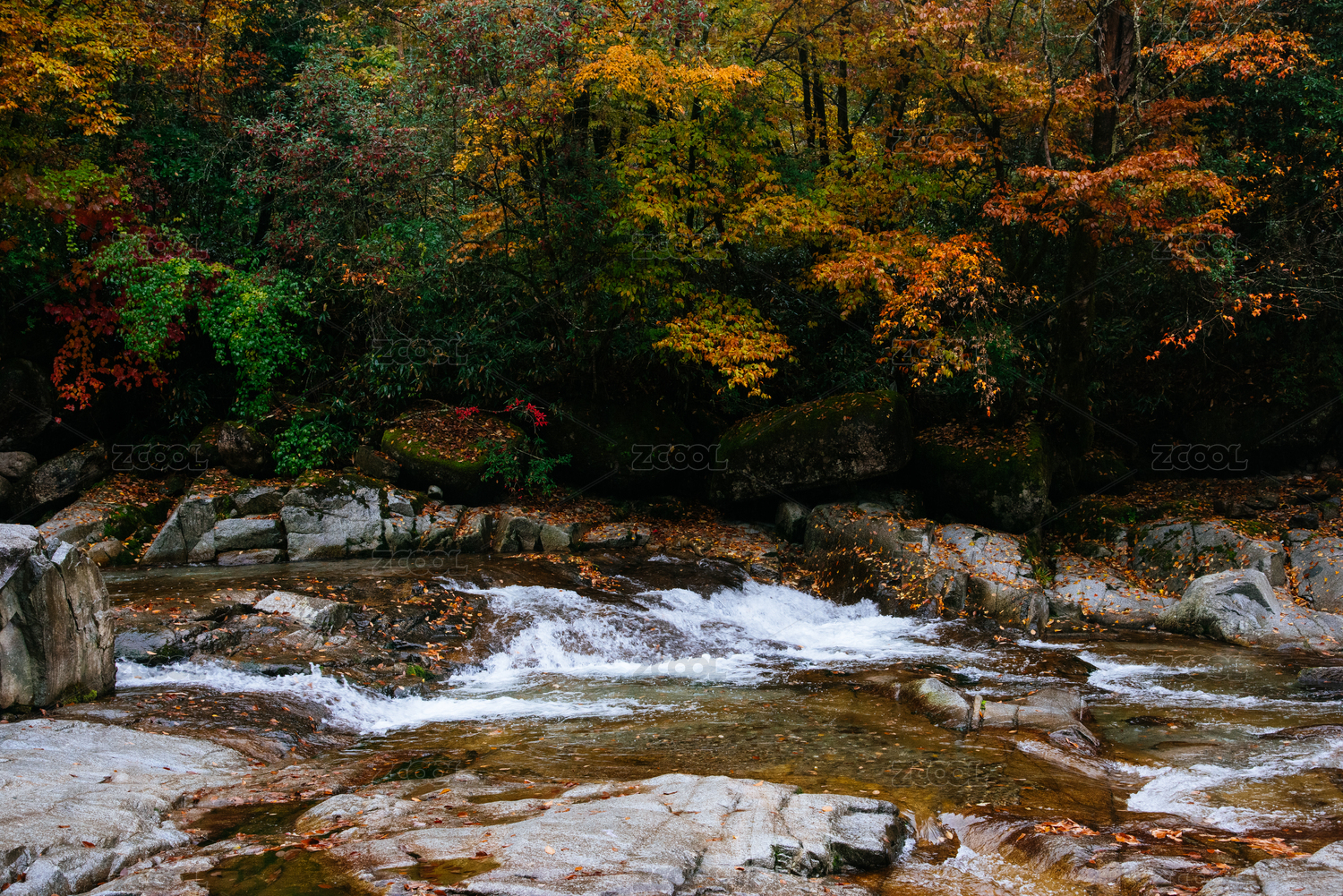 沈阳本溪老边沟 秋天枫树红叶溪流自然风光