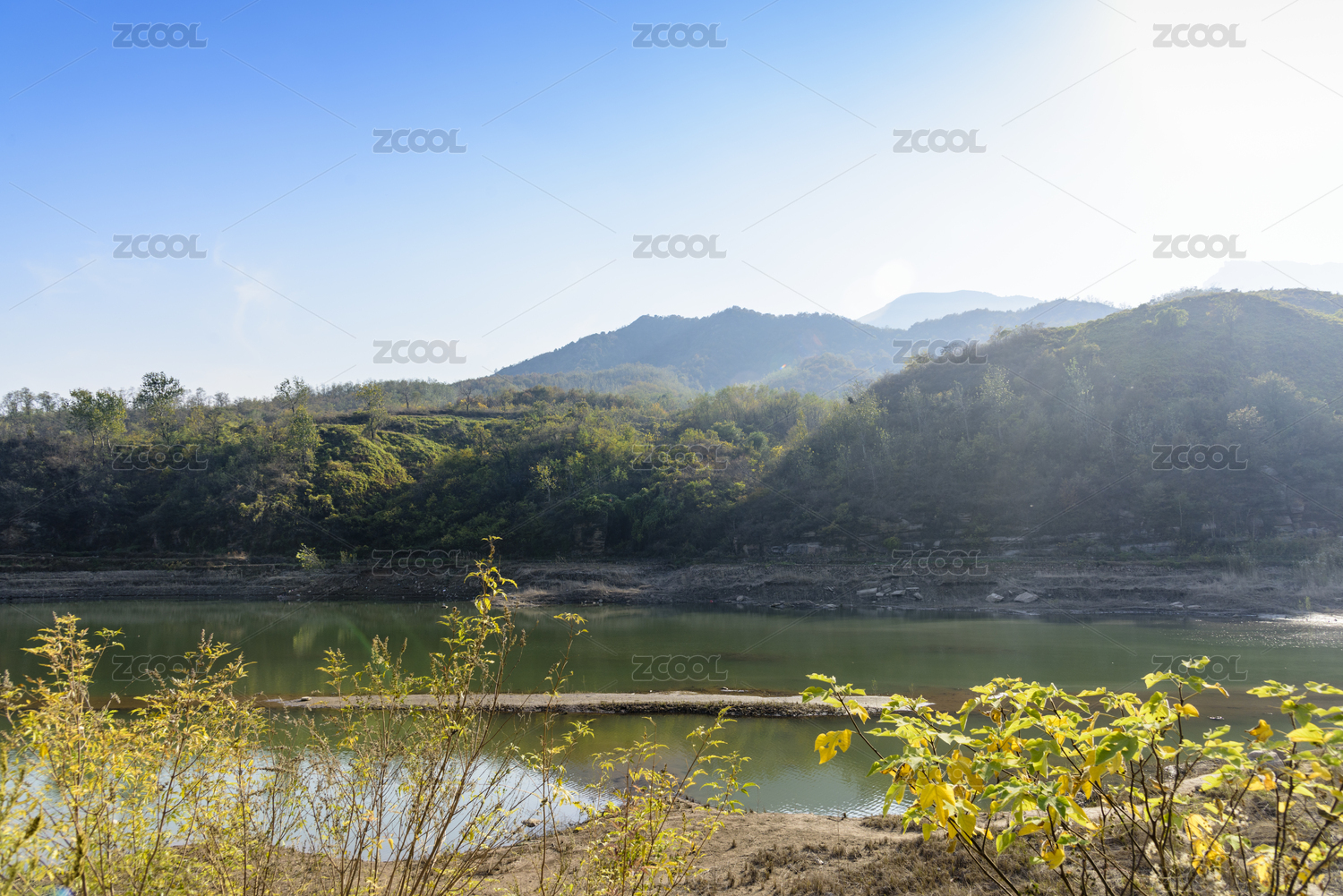秋天山下的一个湖泊