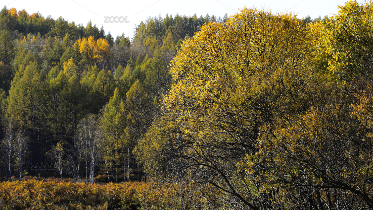 内蒙古阿尔山秋天里金黄色森林树木风景