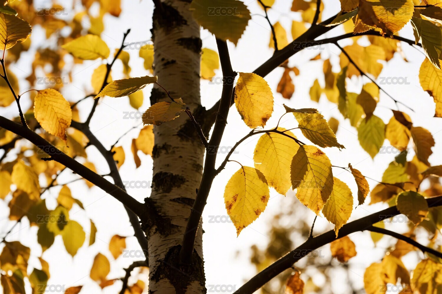 秋天阳光下闪闪发光的金黄色树叶的自然风景