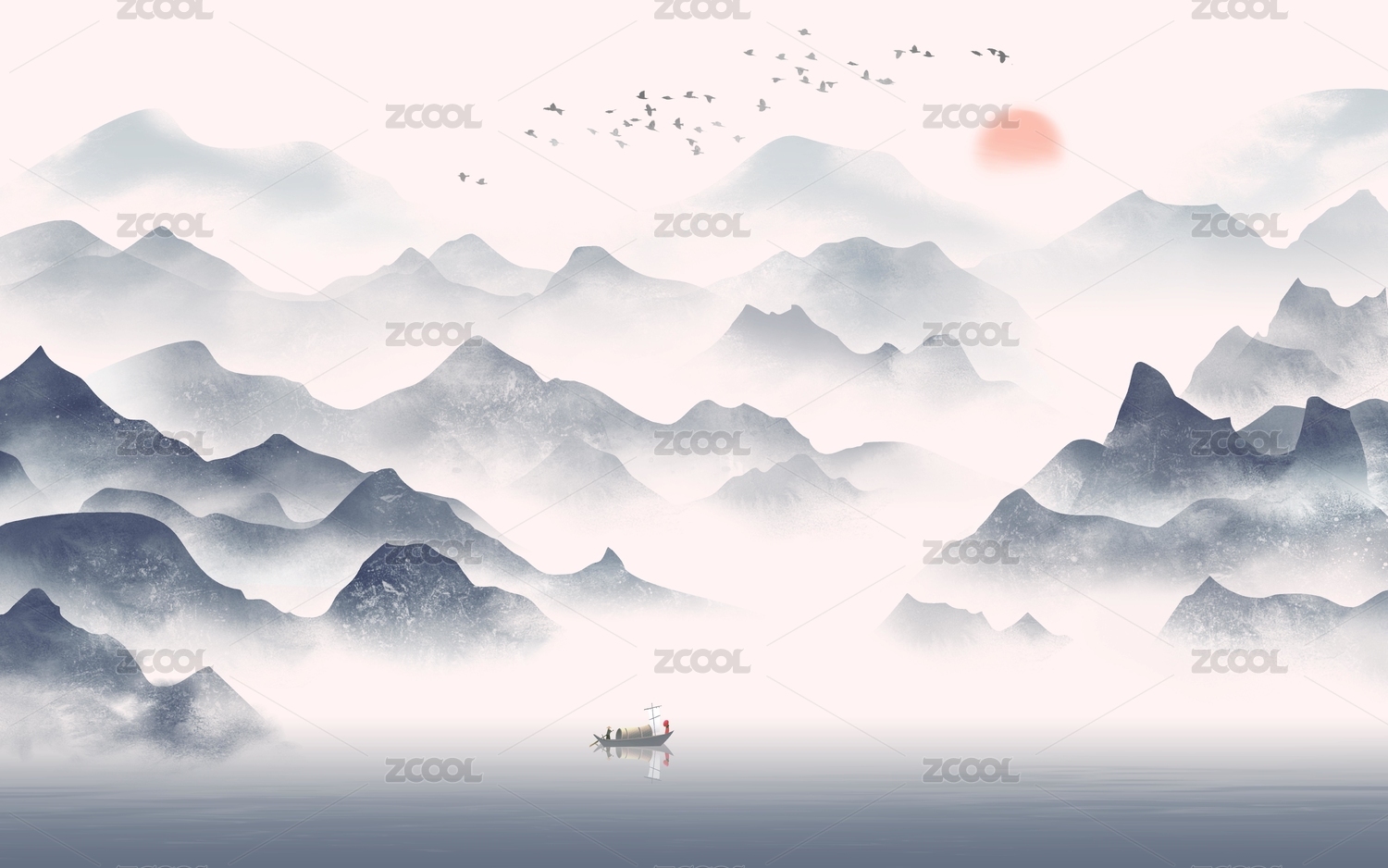 谷雨,意境,禅意,国画,淡雅,山水,空灵,佛系,佛教,禅