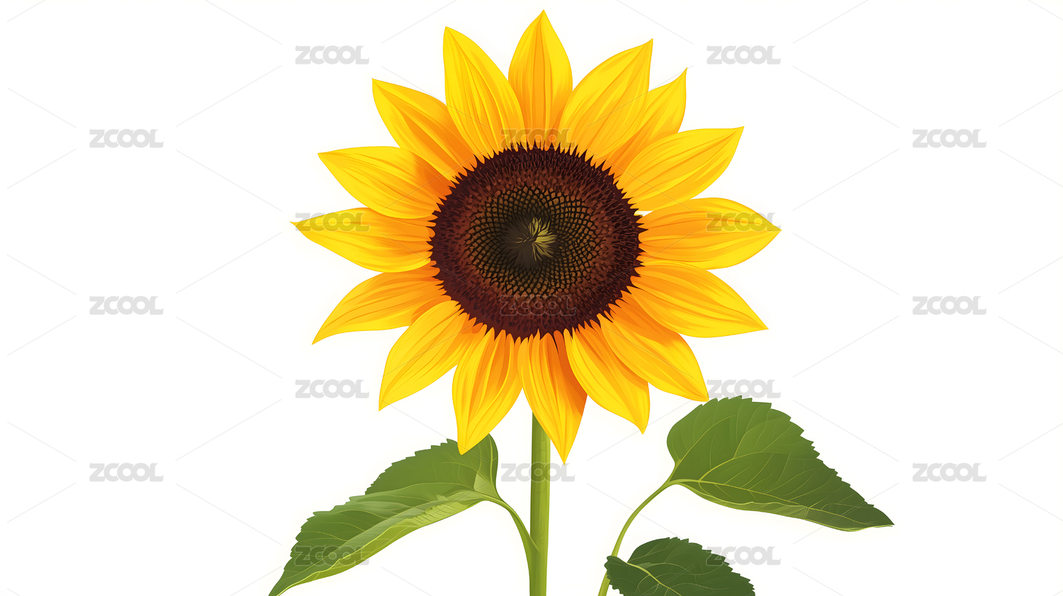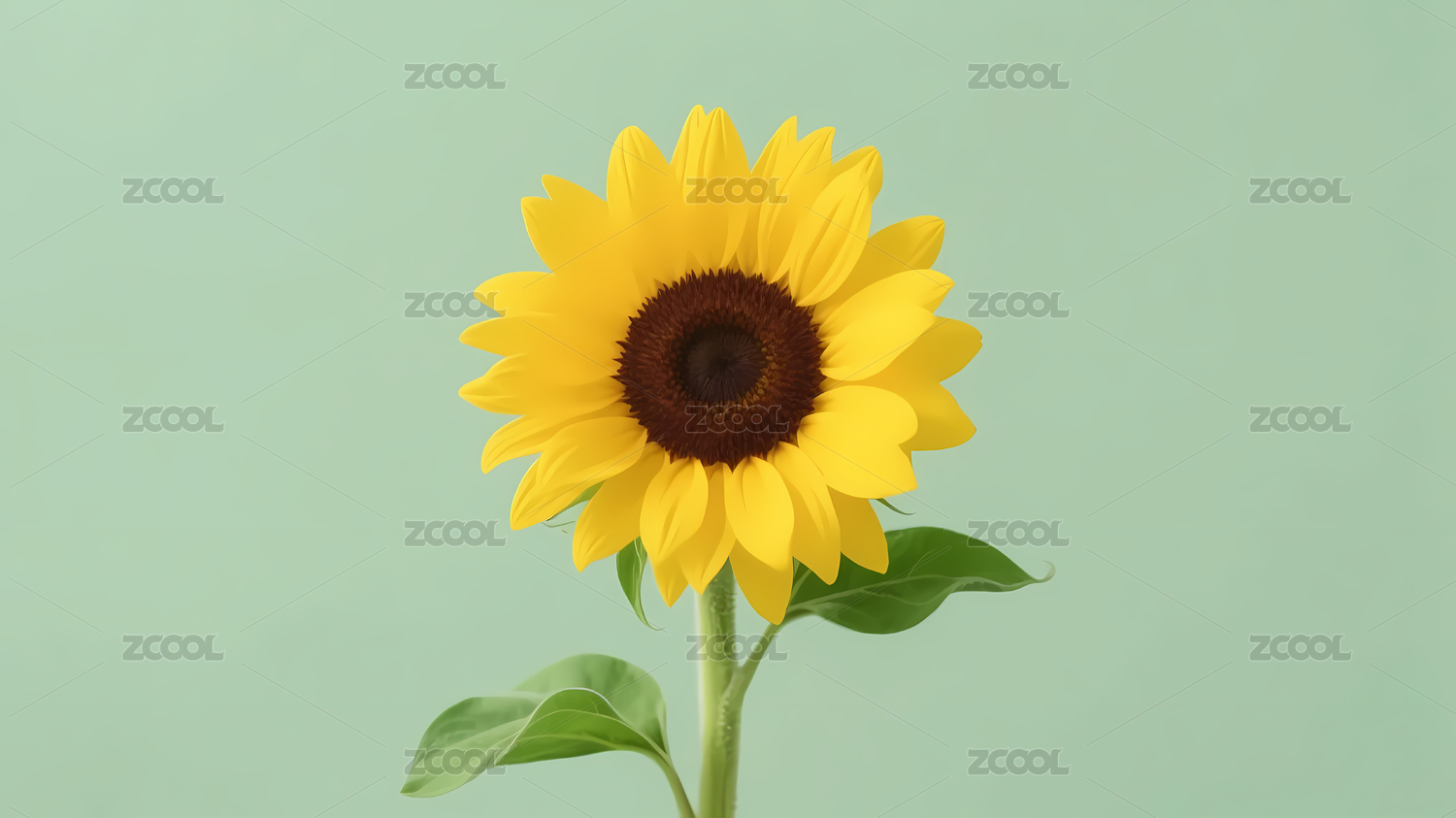 花瓶里一朵黄色向日葵上面有绿色叶子图片