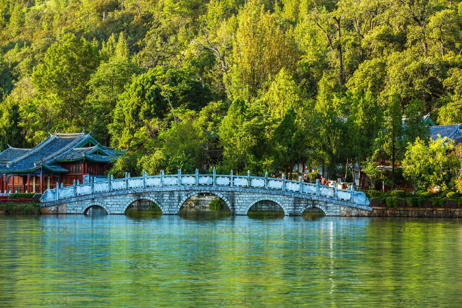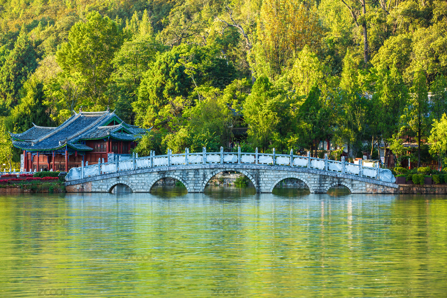 中国云南省丽江市黑龙潭公园玉带桥景观