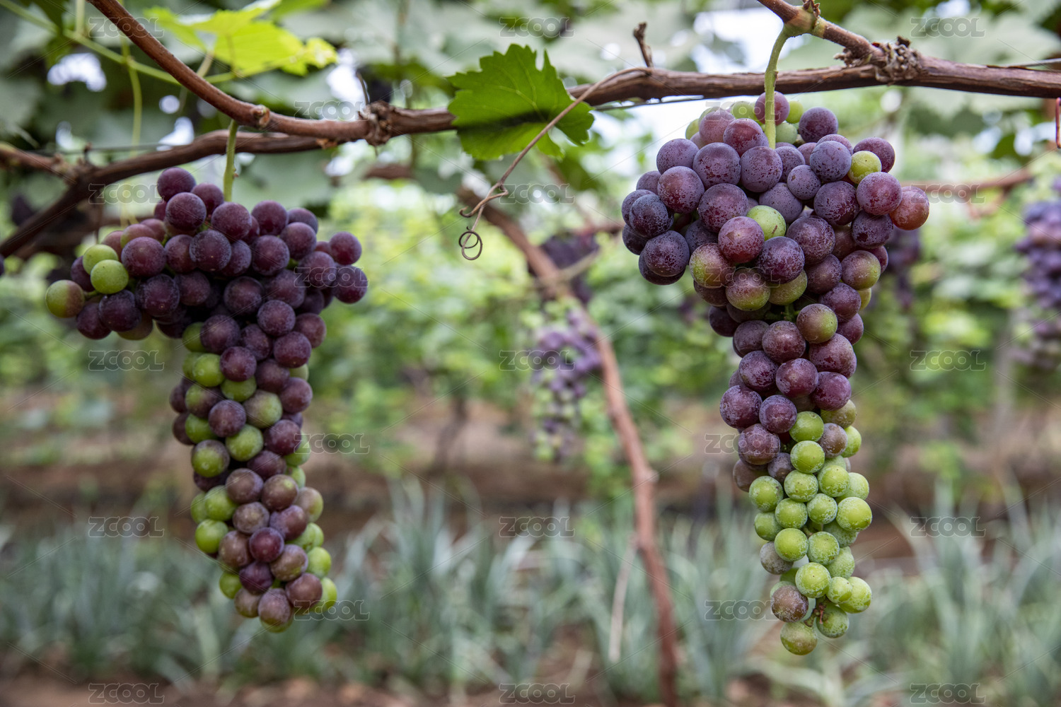 紫葡萄挂在藤上