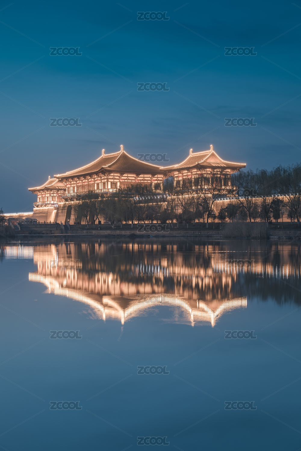 水域,湖泊,反射,建筑,陕西,西安,大唐芙蓉园,城市,天际线,日落