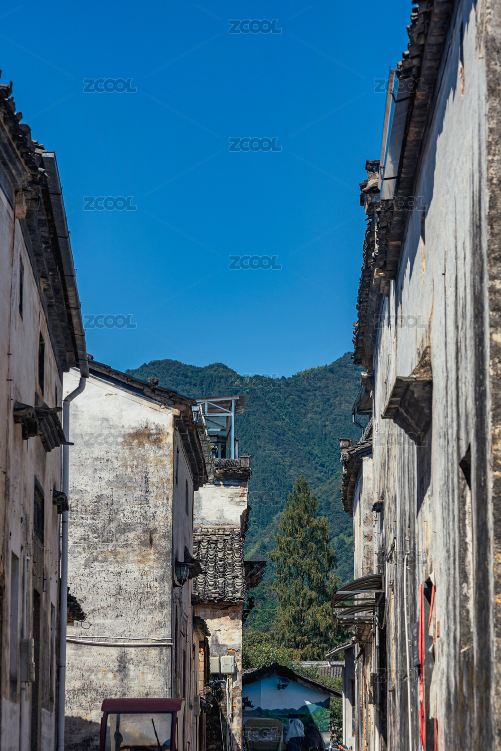 徽州,屏山古村,徽派建筑,蓝天,古建筑,白墙灰瓦,山,古民居