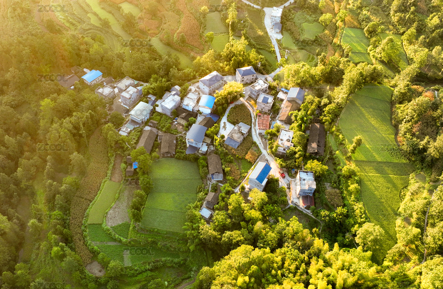 俯拍村落 云上平田