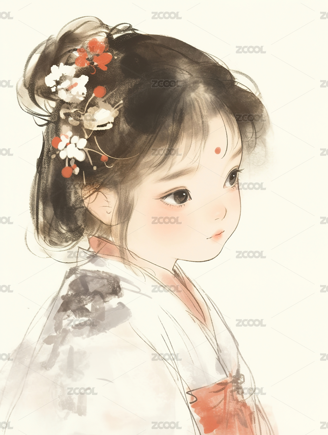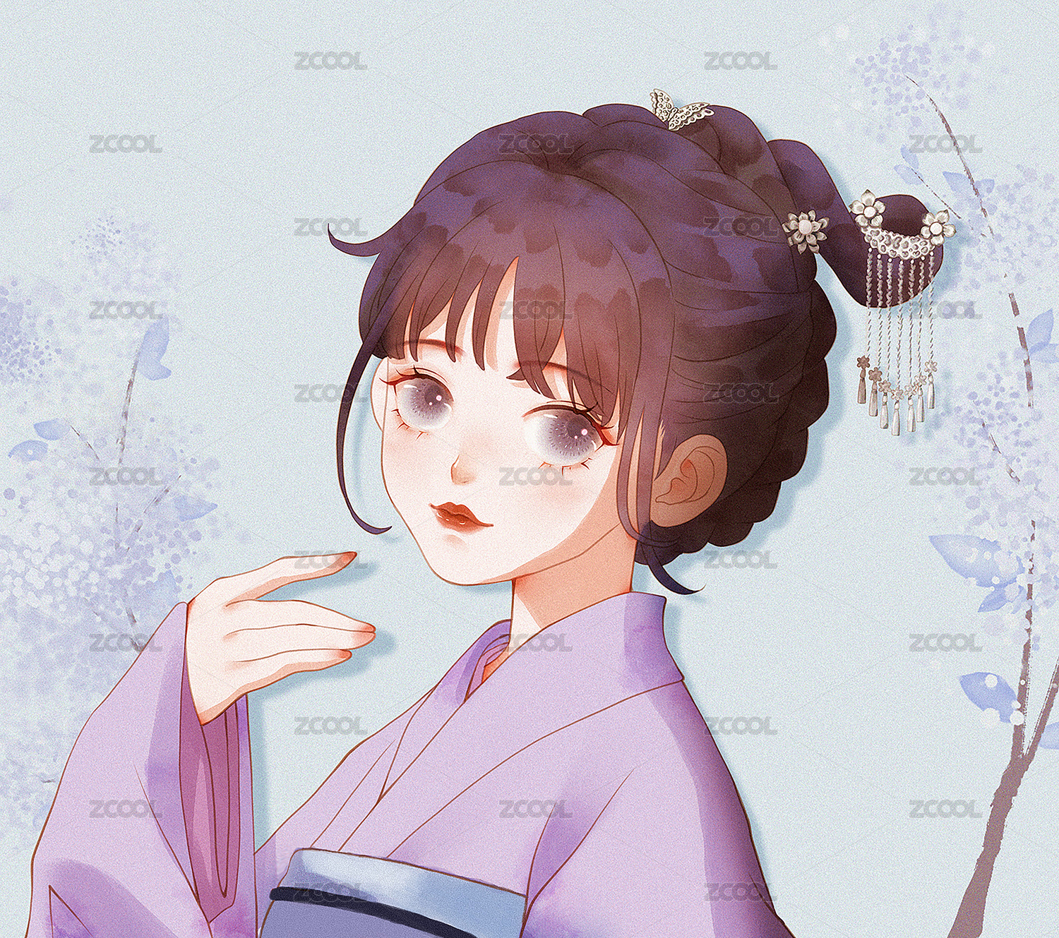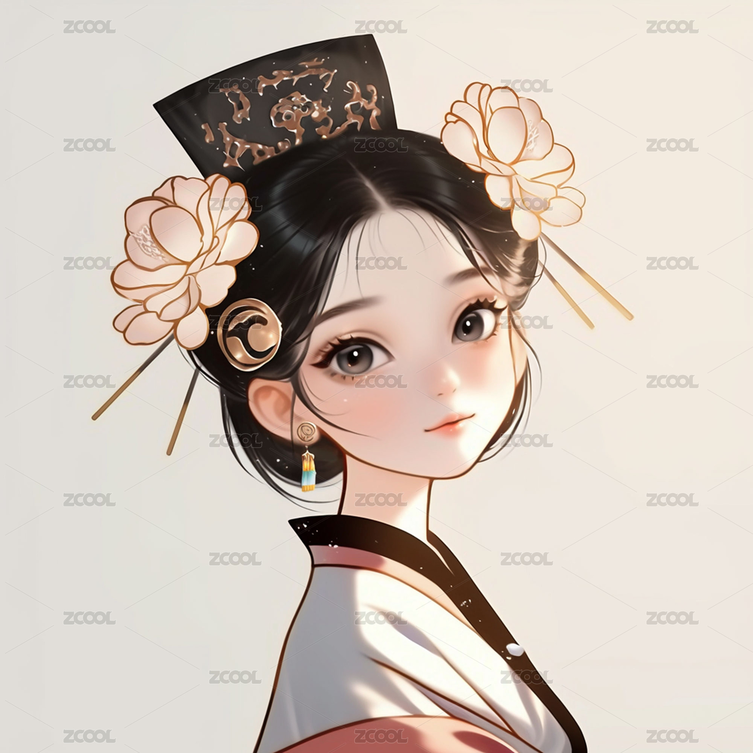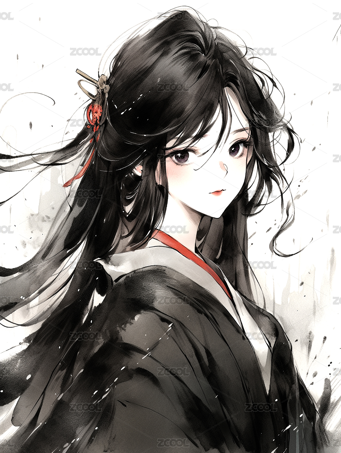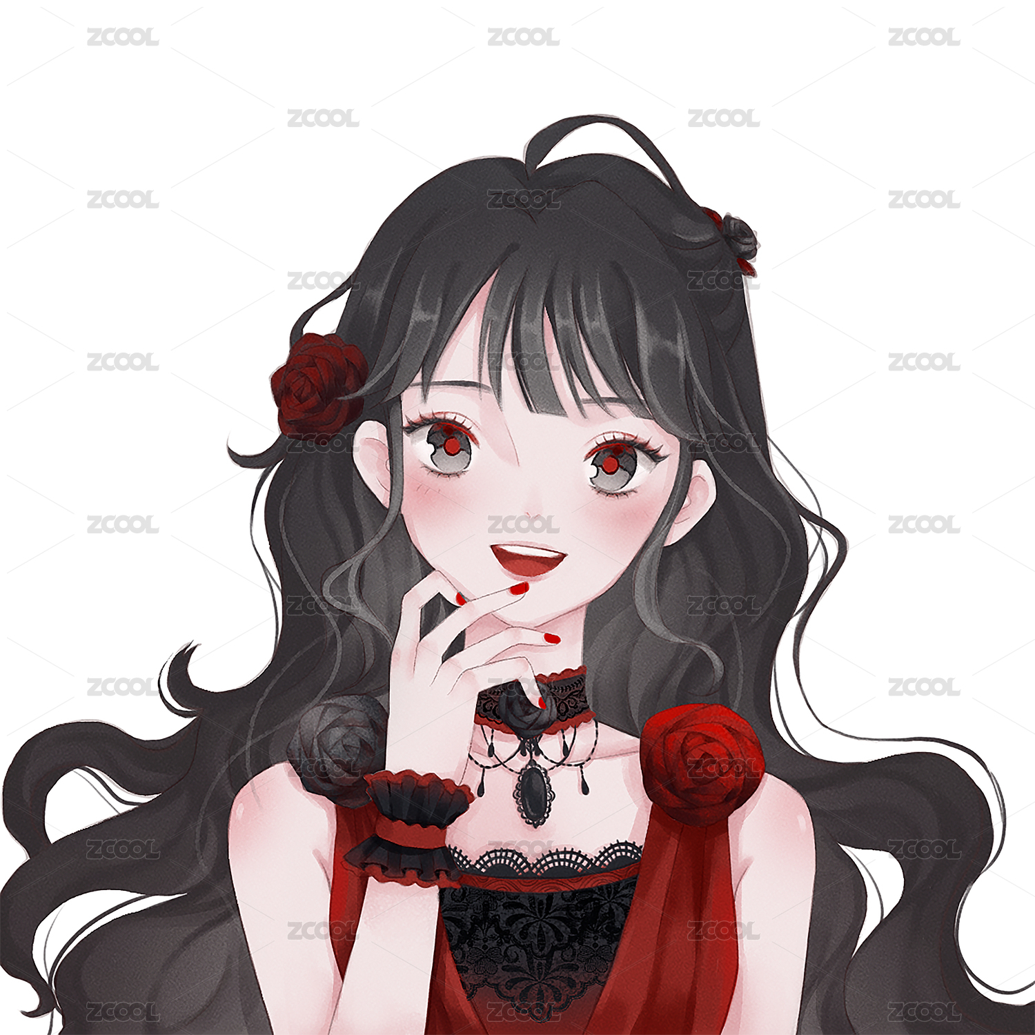 黑发蓝眼睛的美少女头像,二次元风格插画