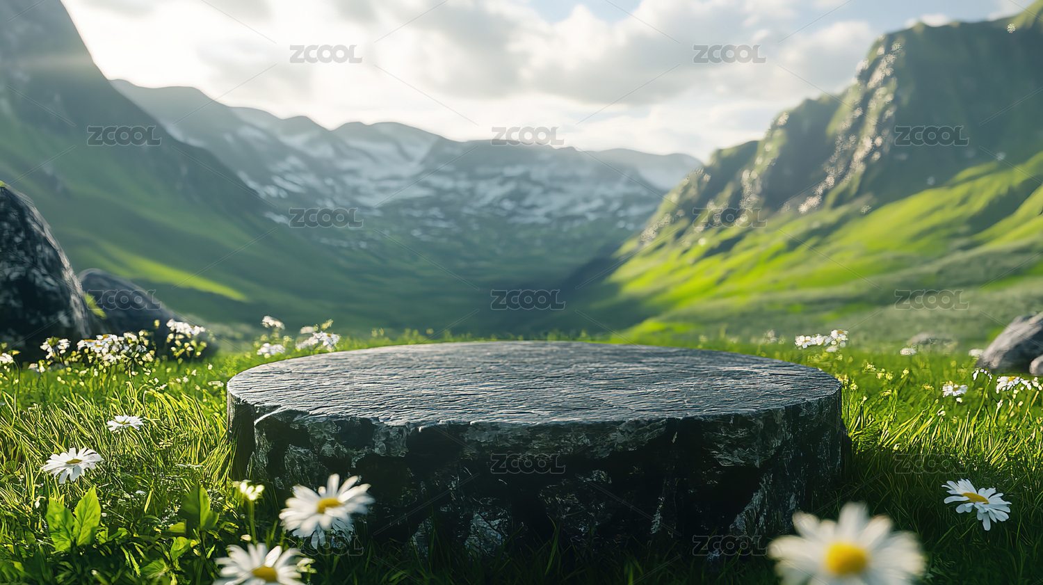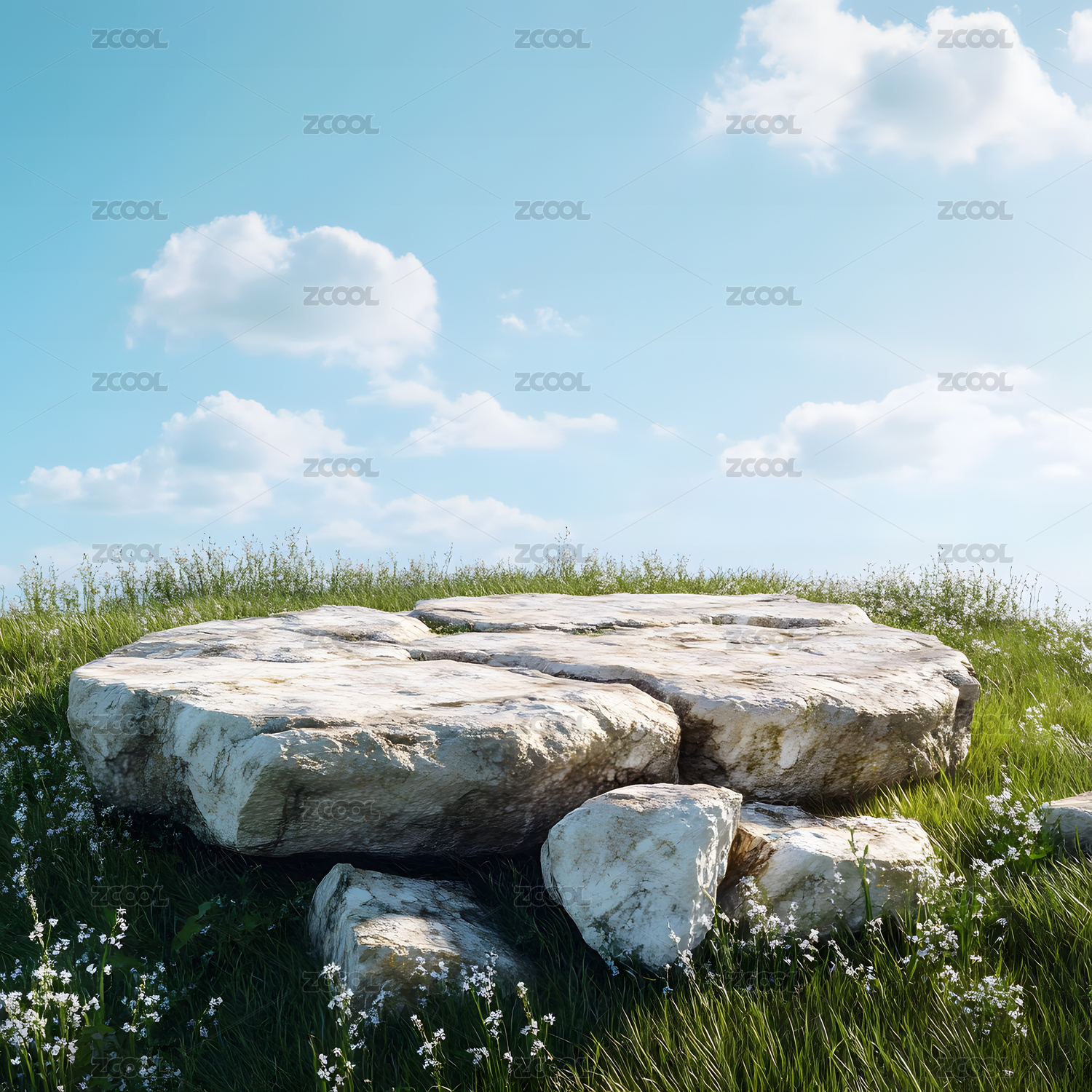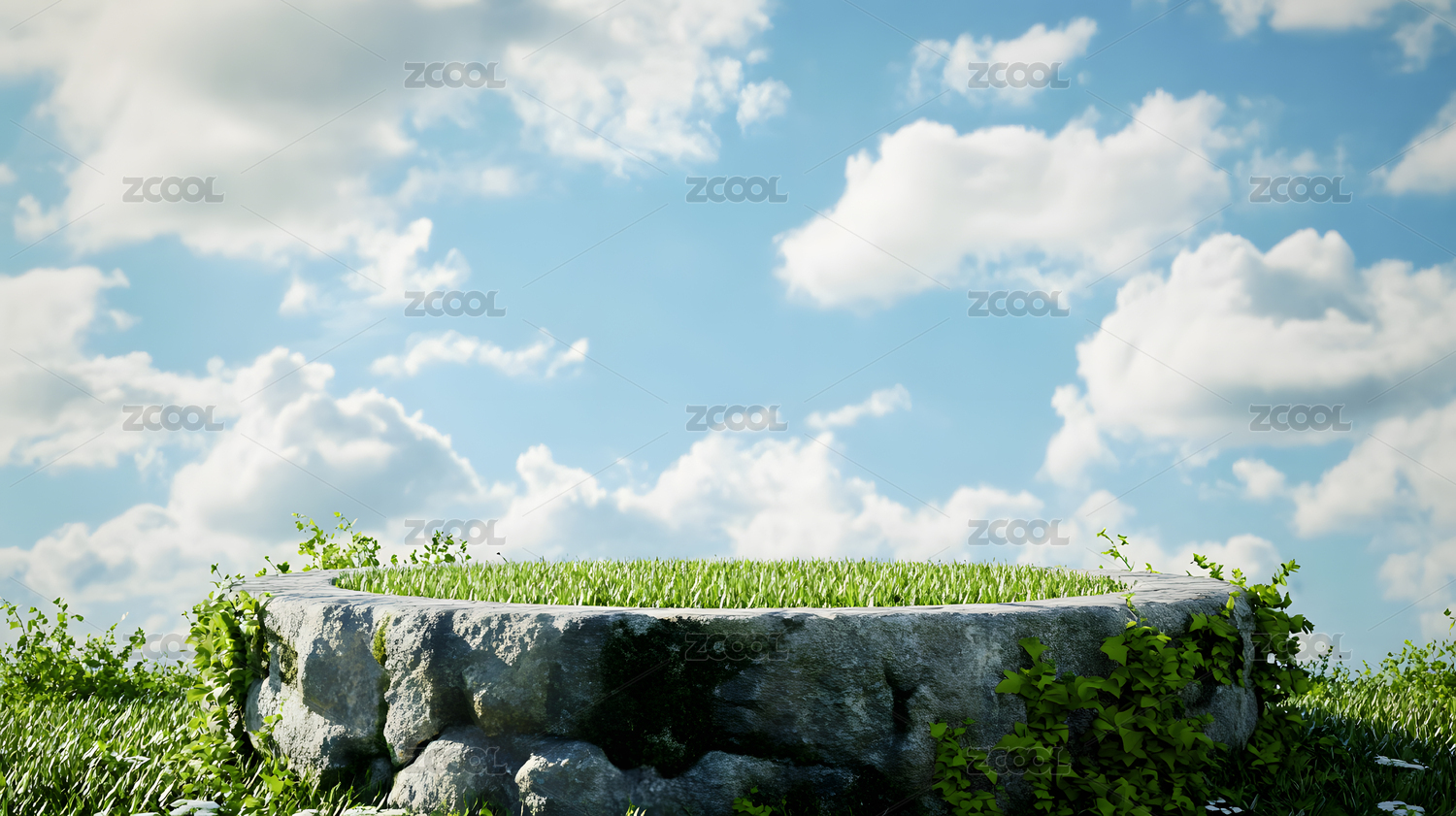 绿草石台天空背景图