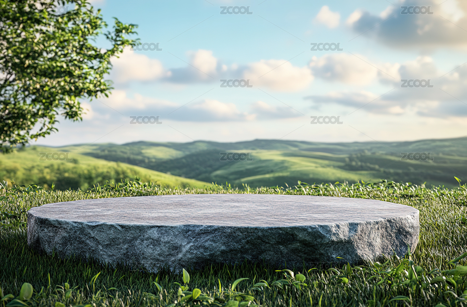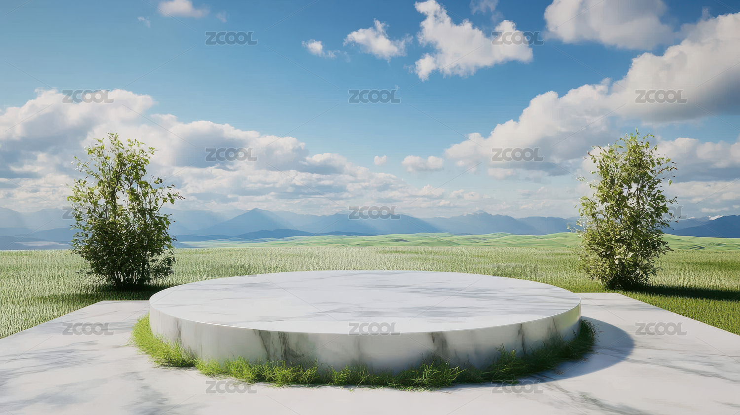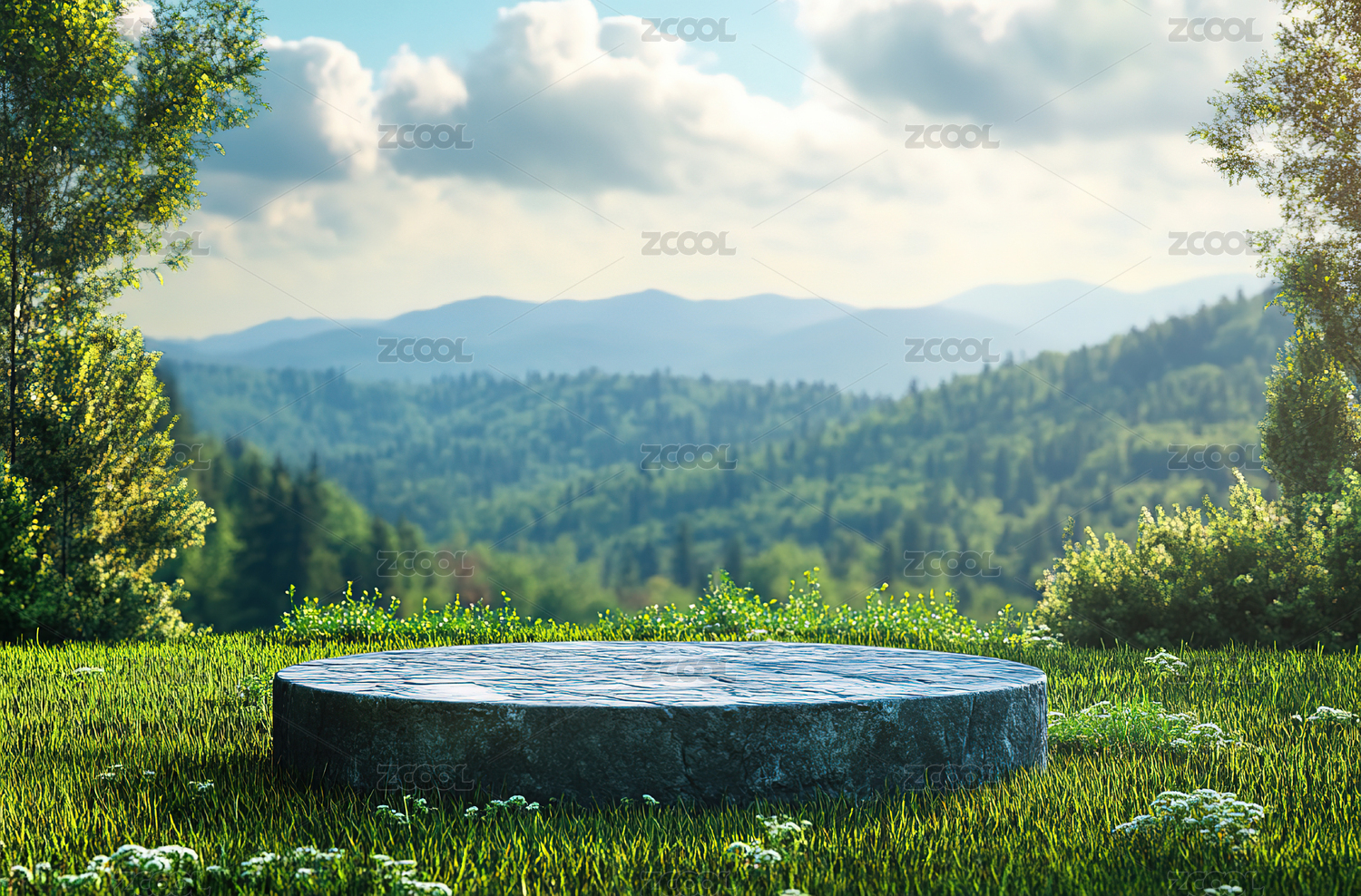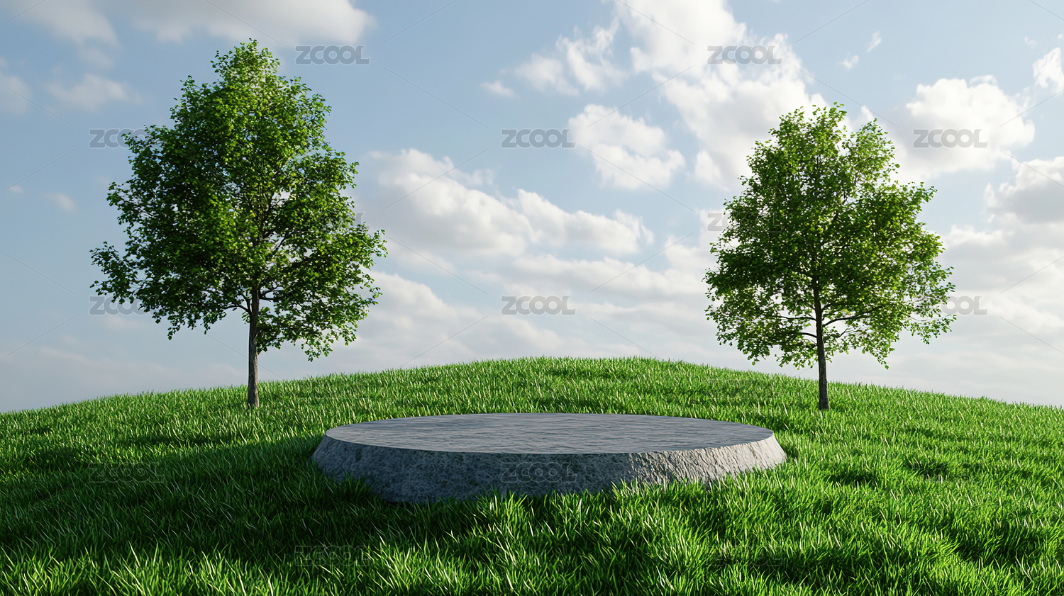 绿草石台天空背景图