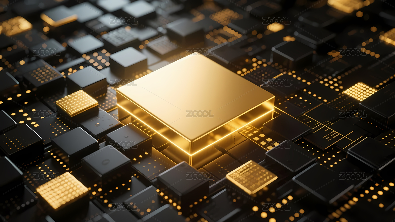 芯片金融科技赛博朋克人工智能三维渲染电路