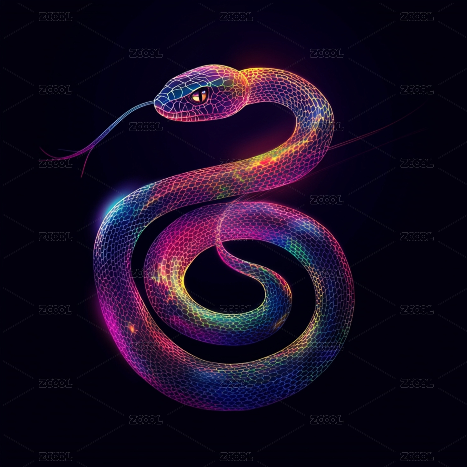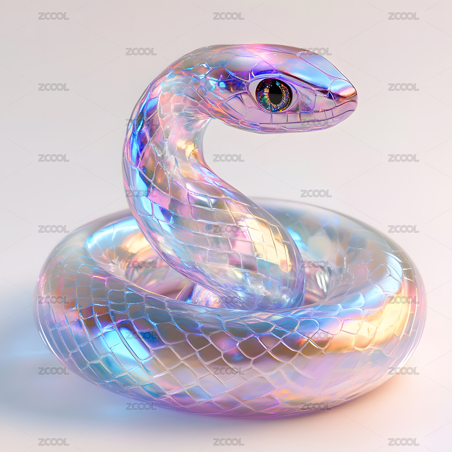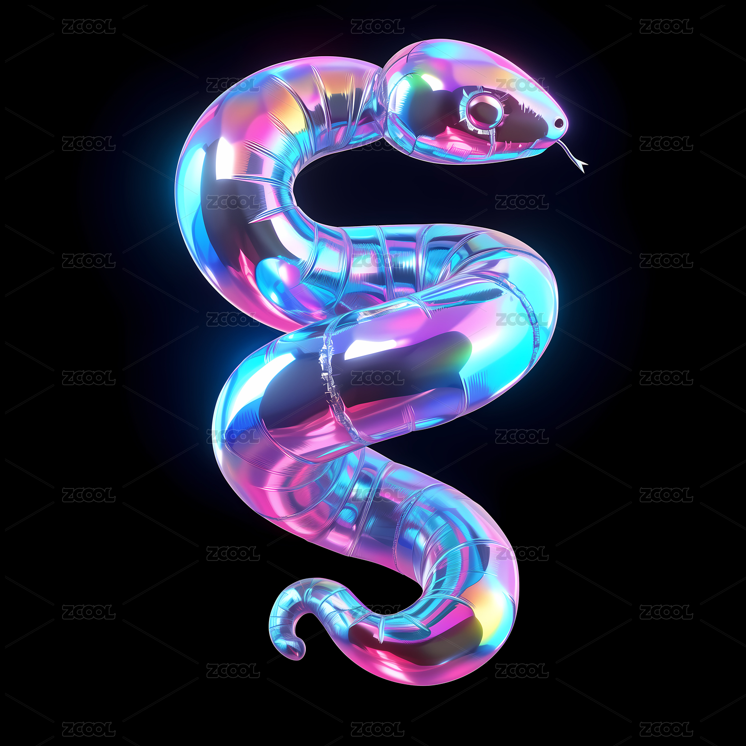 一条时尚炫彩蛇十二生肖全息色彩3D插画