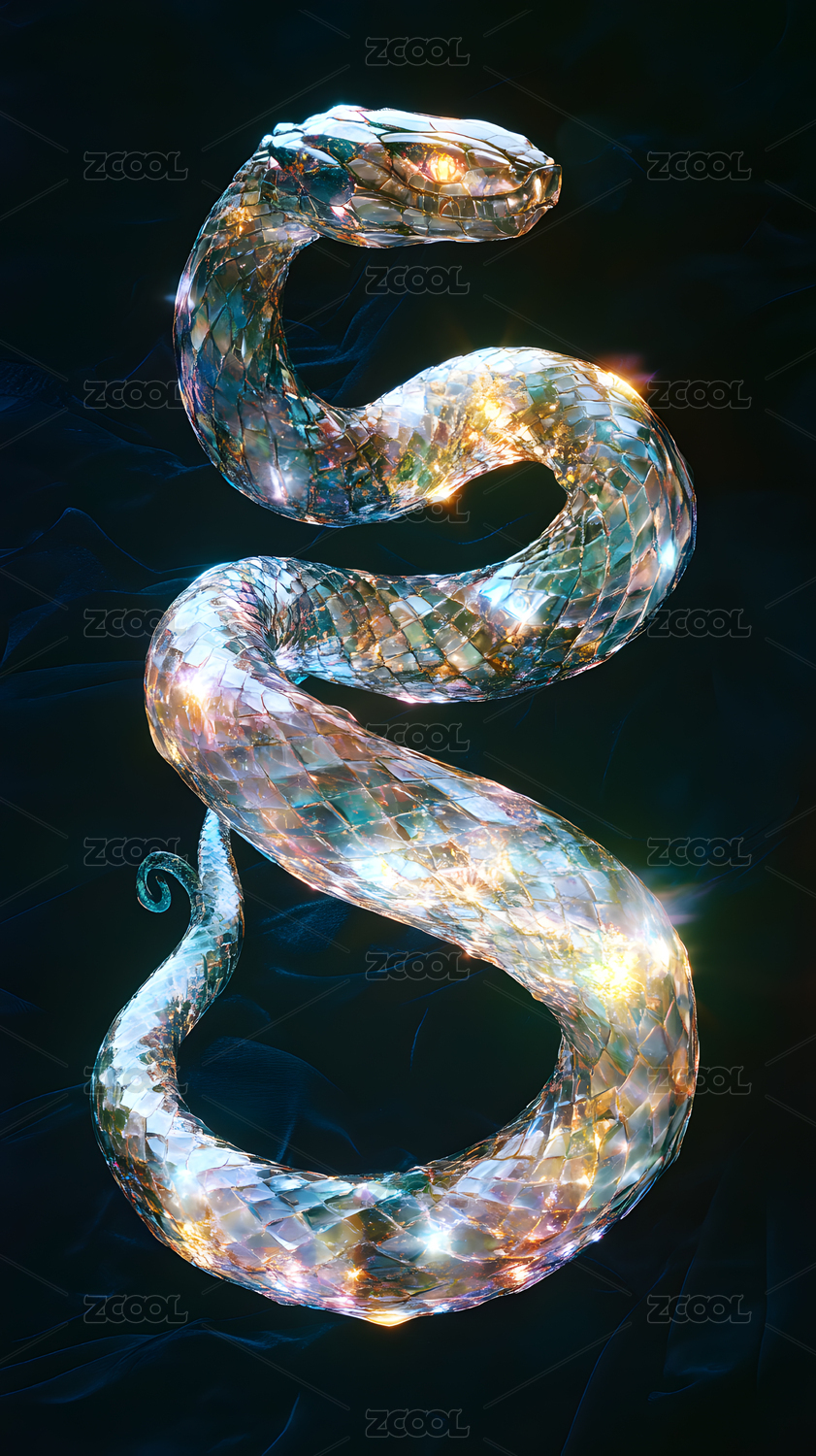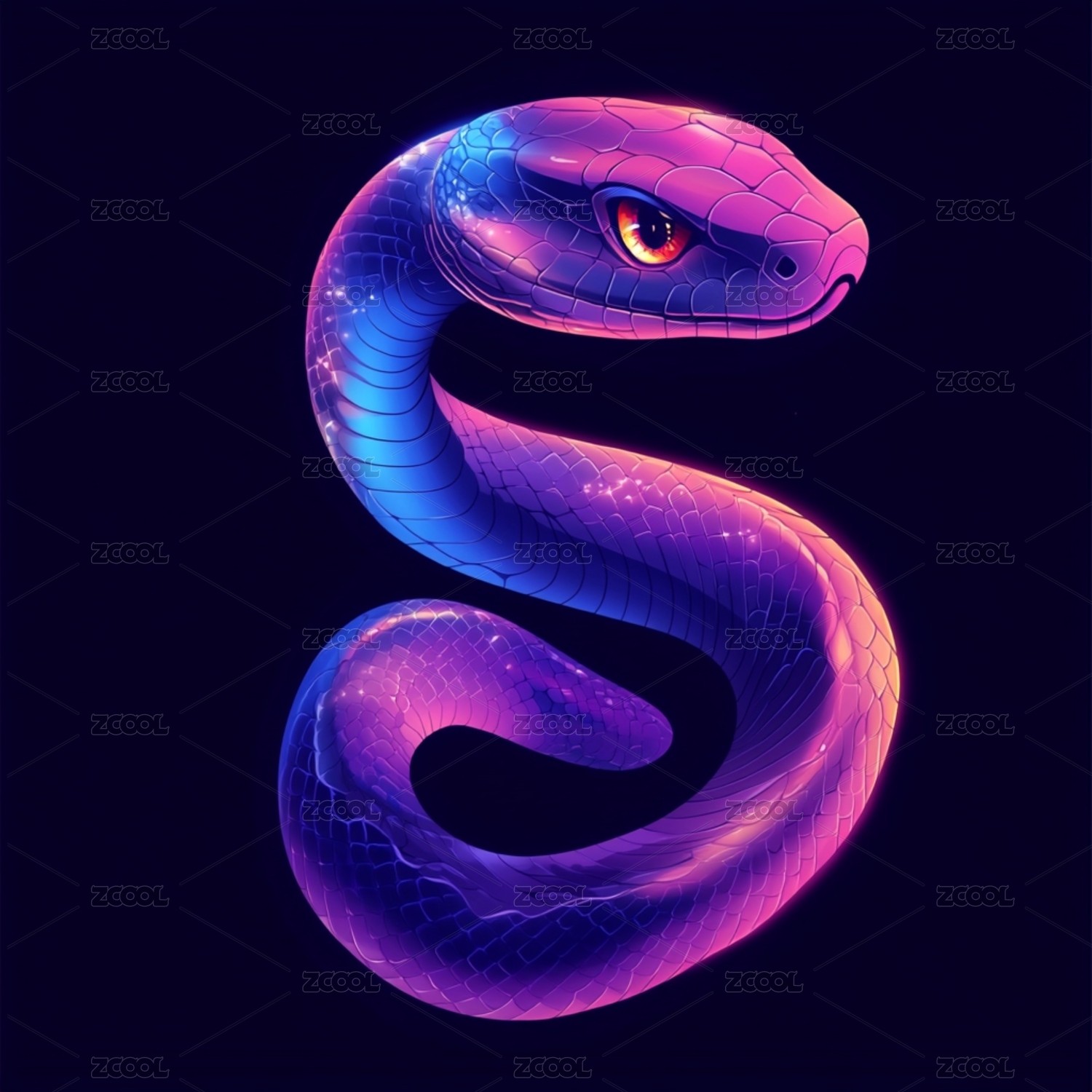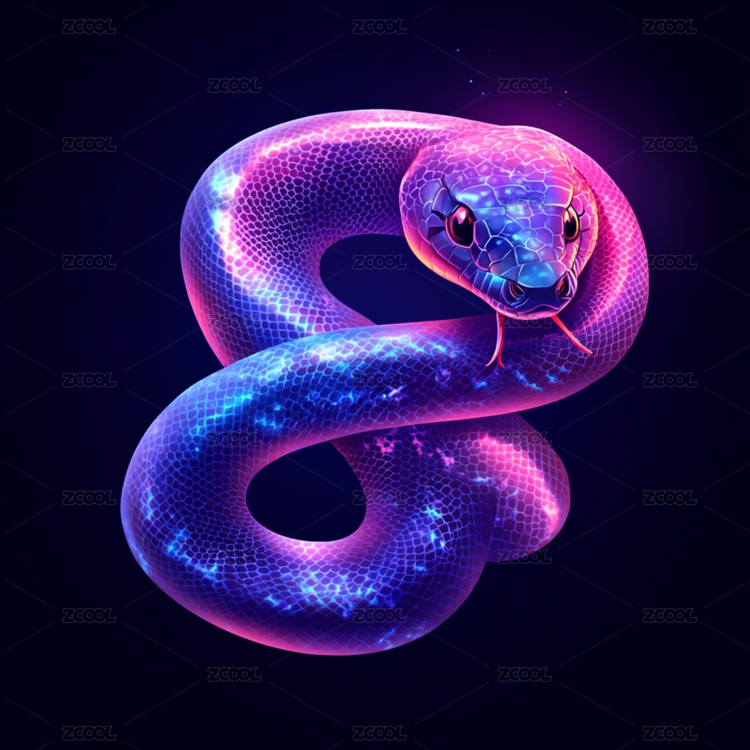 一条时尚炫彩蛇十二生肖全息色彩3D插画