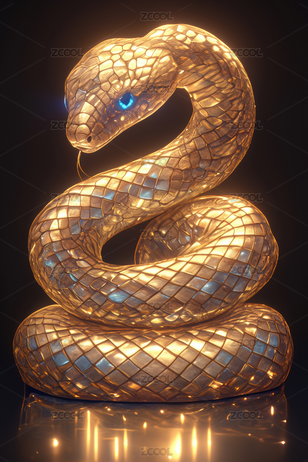 一条炫彩的蛇十二生肖全息色彩3D插画