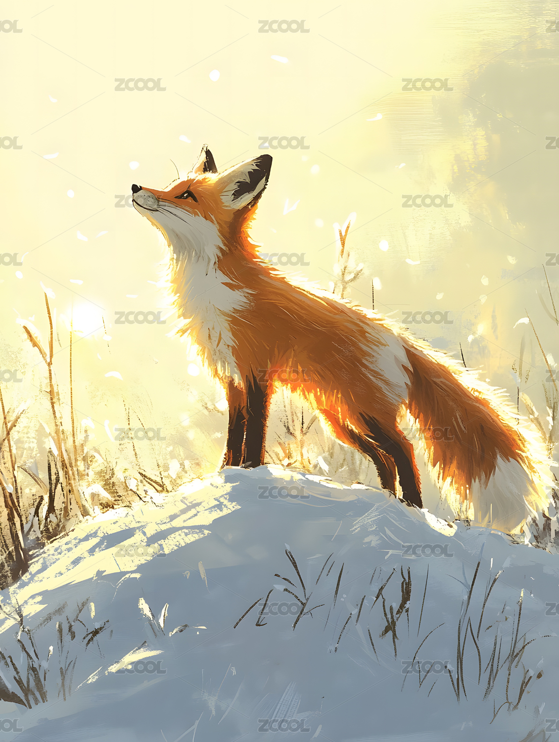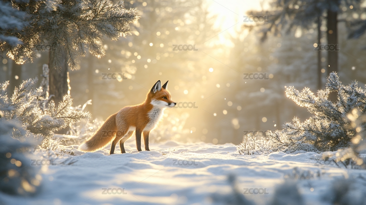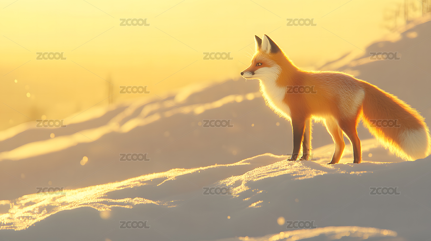 红狐,狐狸,动物,野生动物,自然,雪,冬季,冬天,夕阳,日落