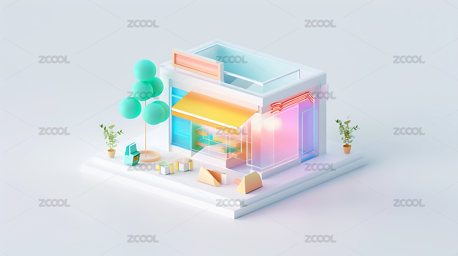 3d透明玻璃感商店图标背景