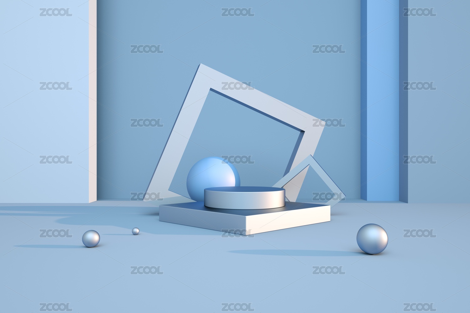 创意几何体室内电商展示台3D渲染