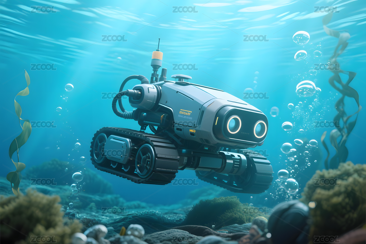 水下机器人深海探险人工智能AI数字艺术插