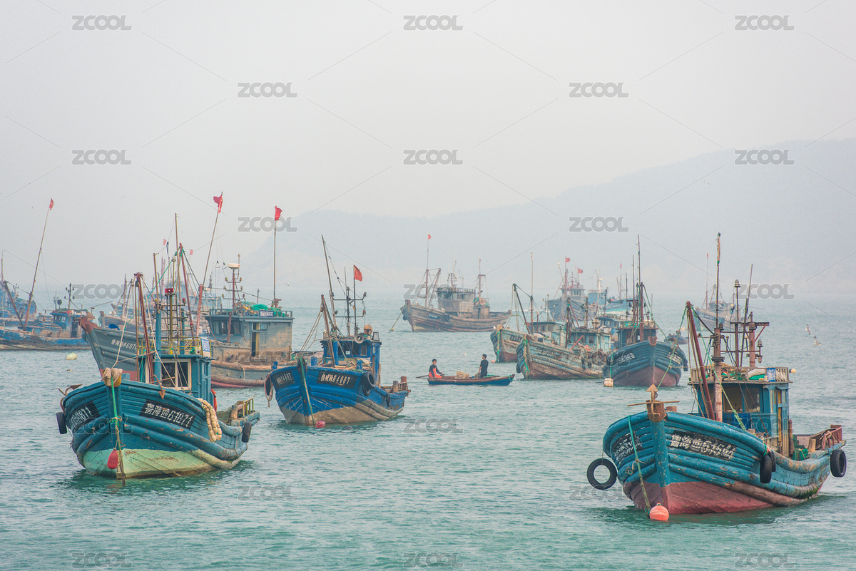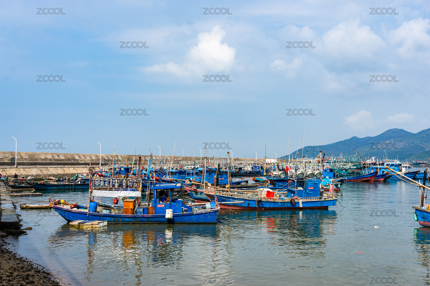 广东汕头南澳岛云澳镇避风港停靠的渔船风光