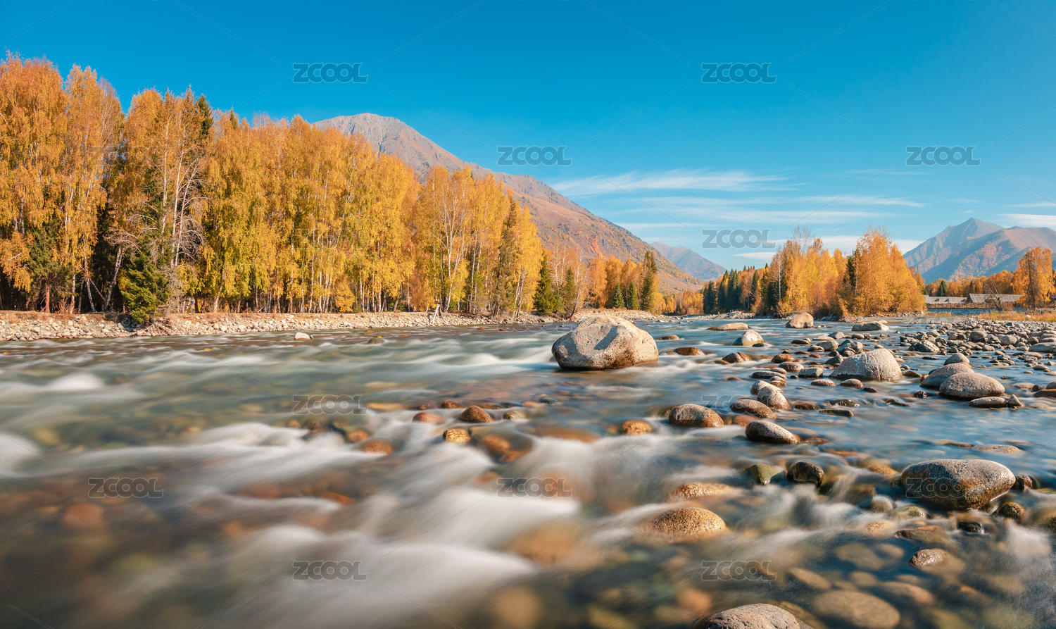 中国新疆阿勒泰禾木乡村田园河流秋天自然风光