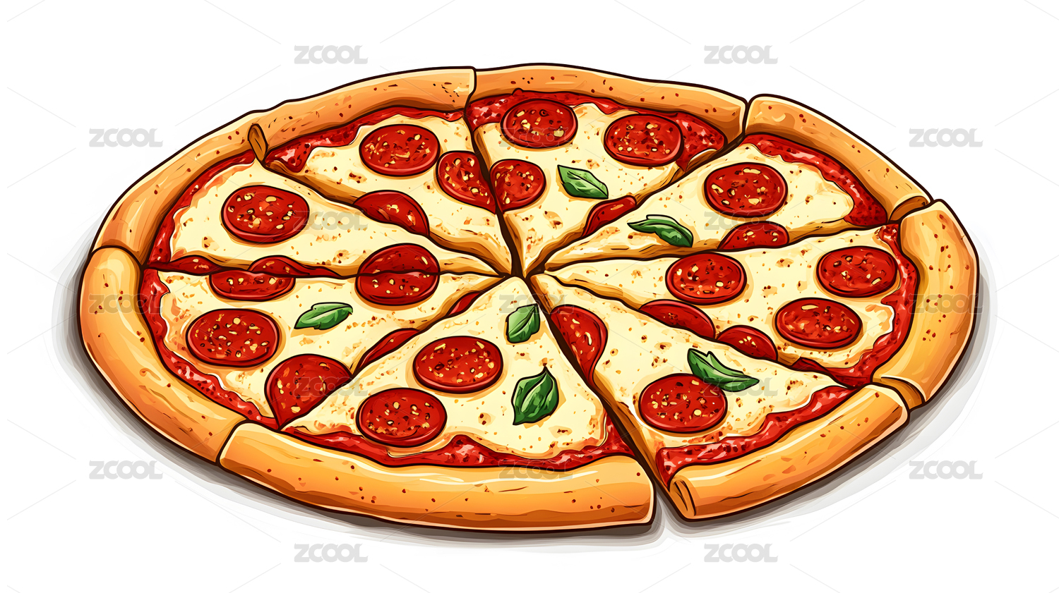 复古美味披萨芝士拉丝香肠片铺满饼面