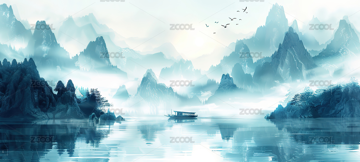 中国画,插画,高山,自然,背景,地形,写意画,创造力,水墨画