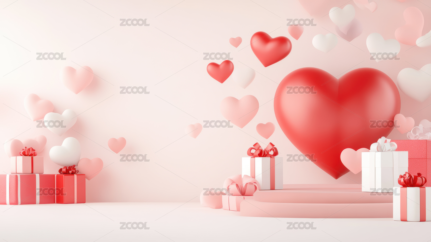 七夕情人节带气球的礼物盒展台爱情主题背景