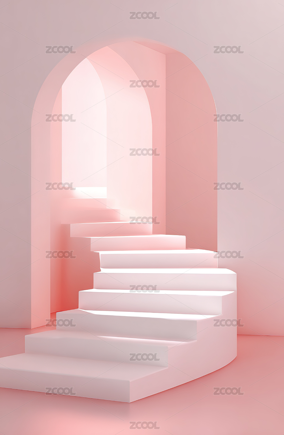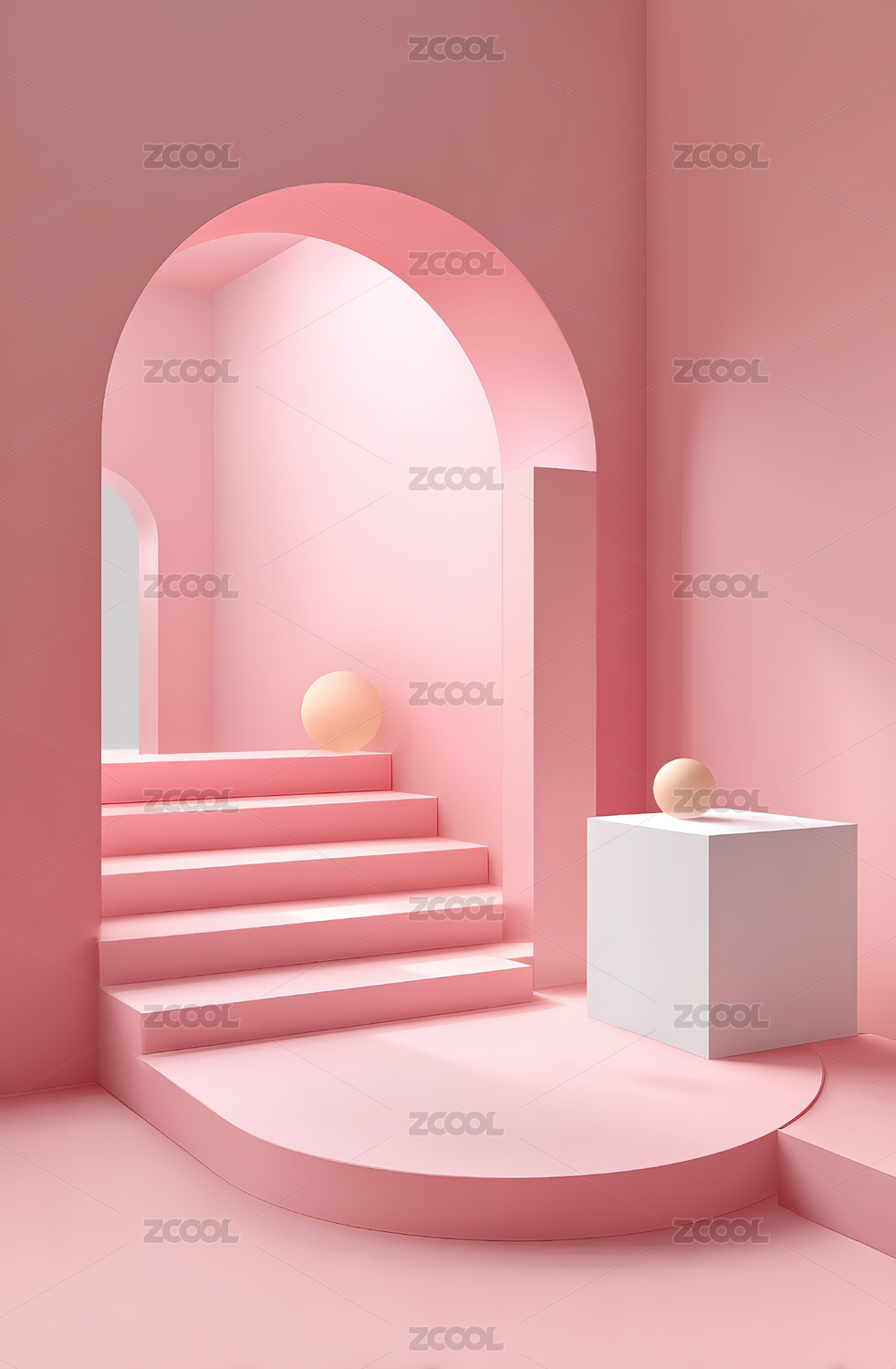 粉色拱门与阶梯的简约场景