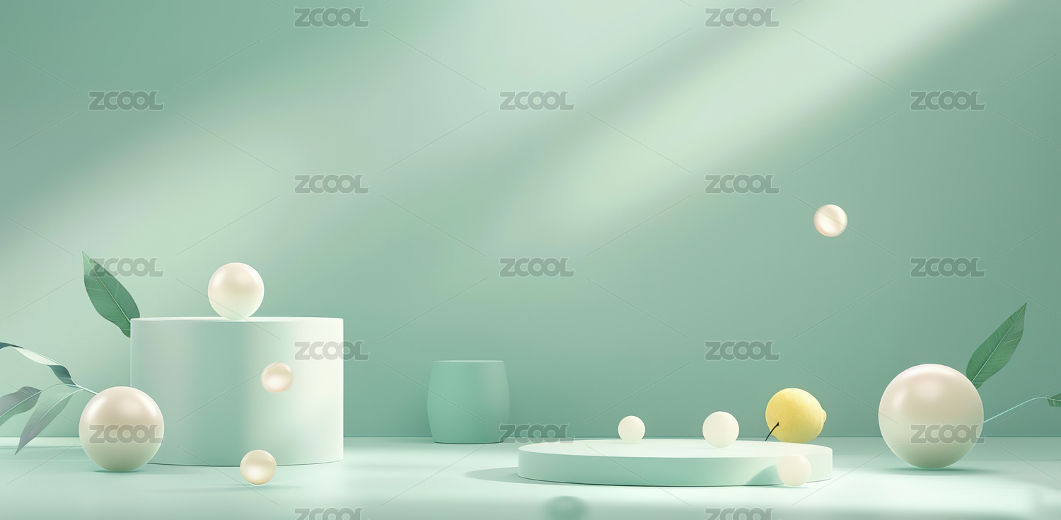 3D绿色小清新光影圆形电商产品展台