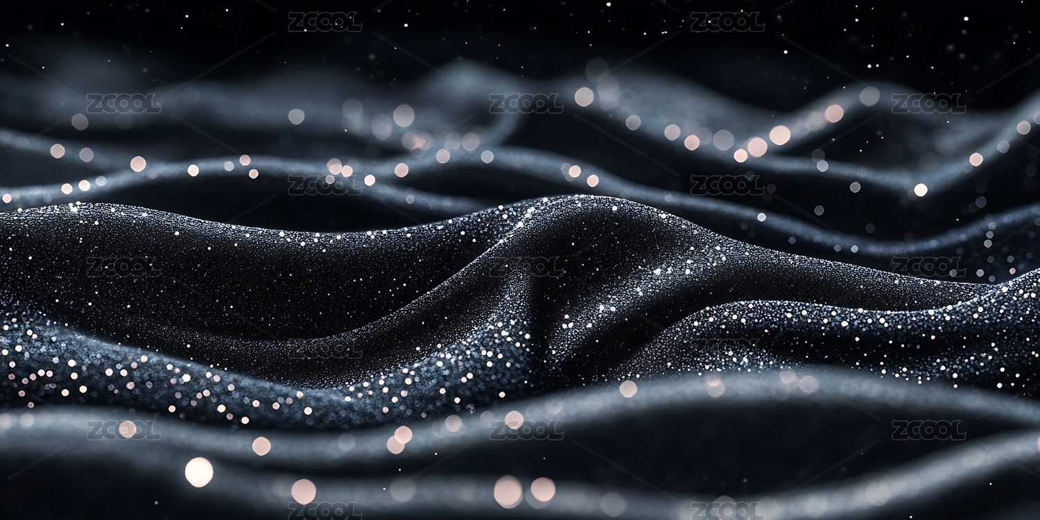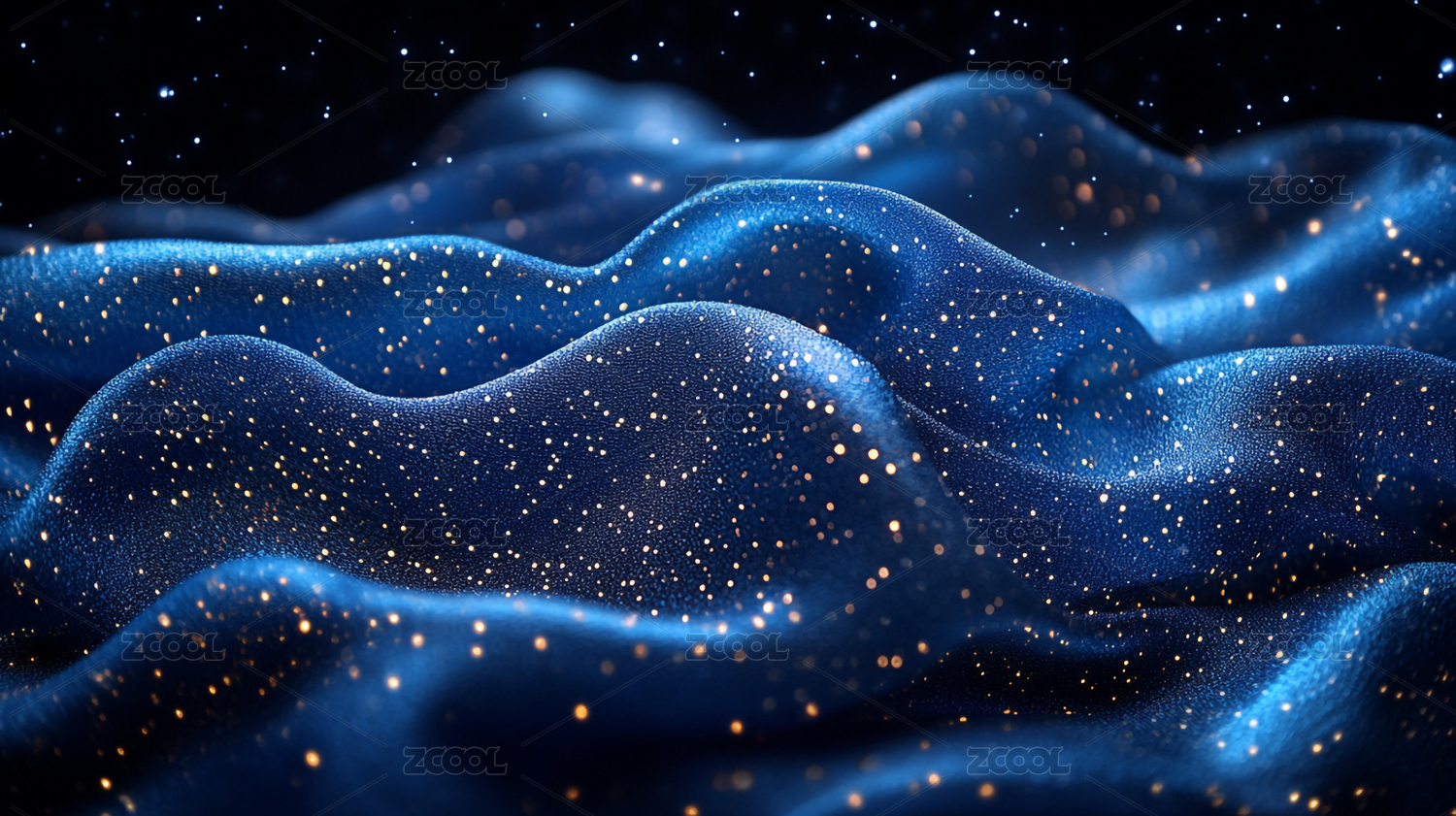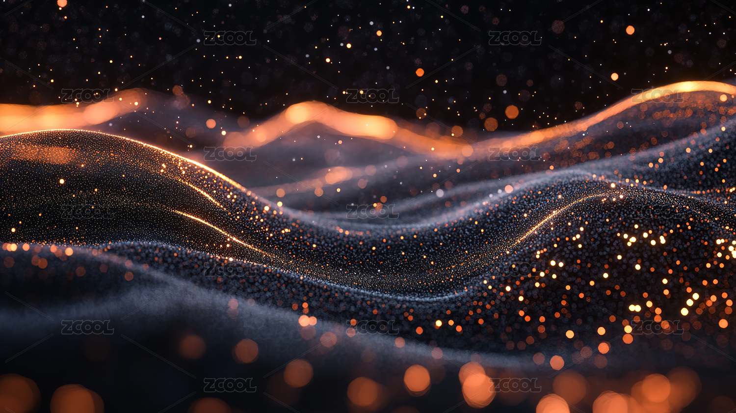 深蓝色波浪抽象海报背景,散发着橙色光点
