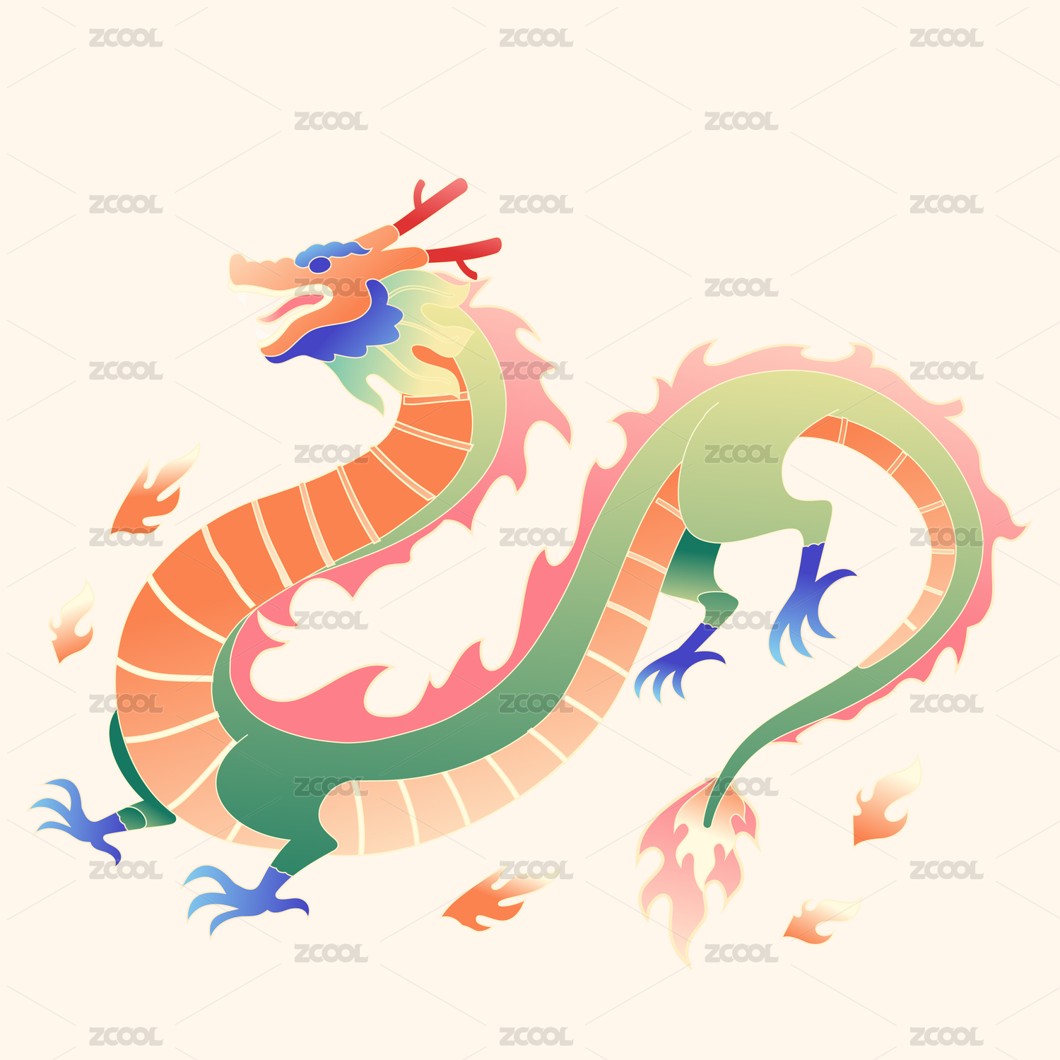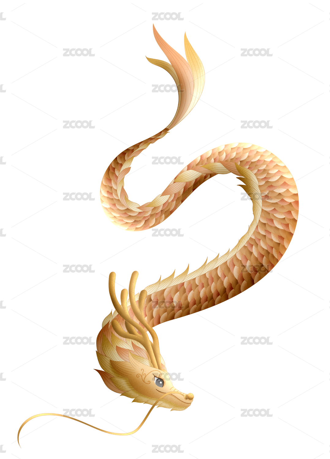 一条金色鳞片绿色须发的巨龙国潮风插画形象