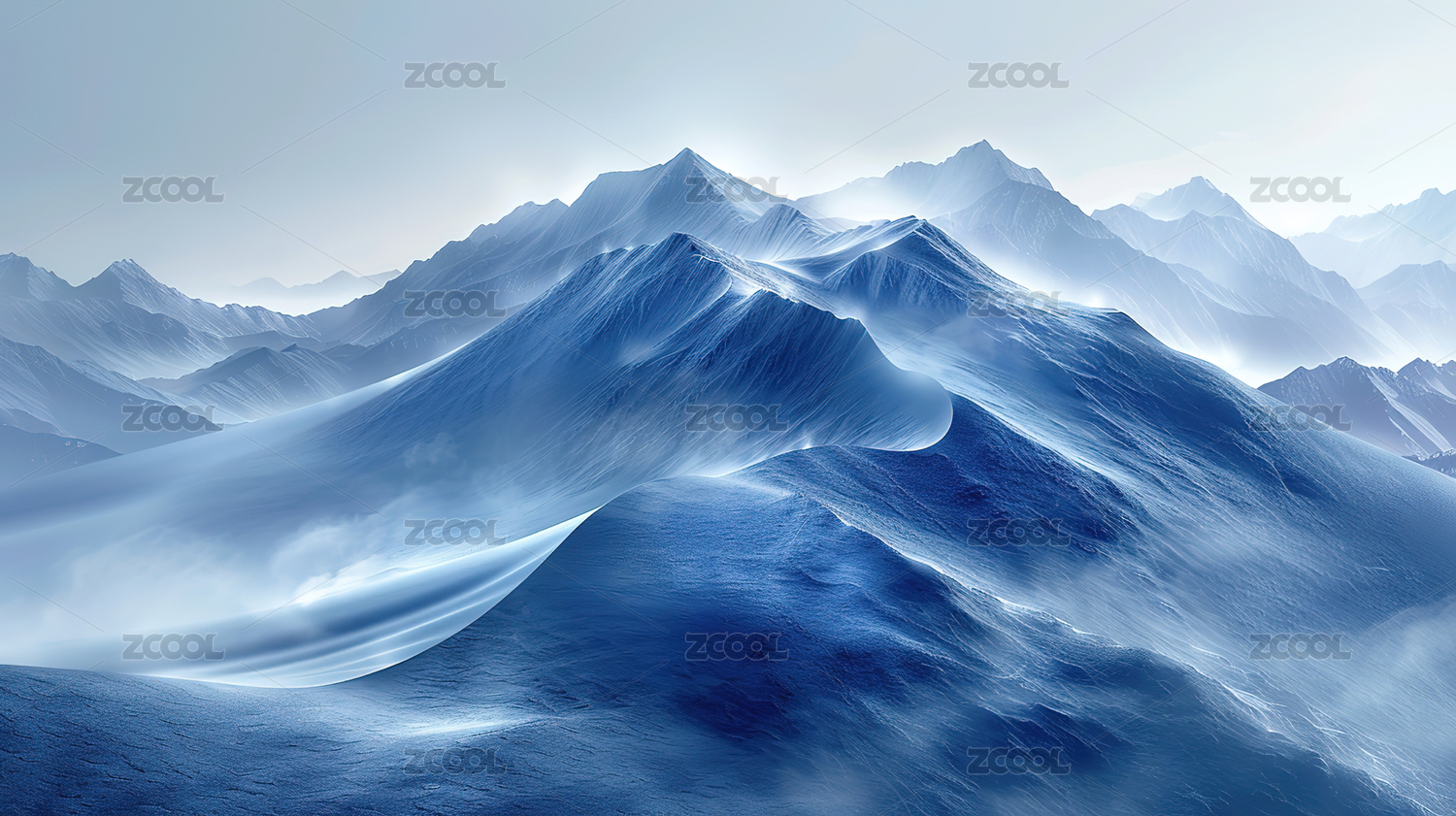 梦幻蓝色山峦起伏的景象