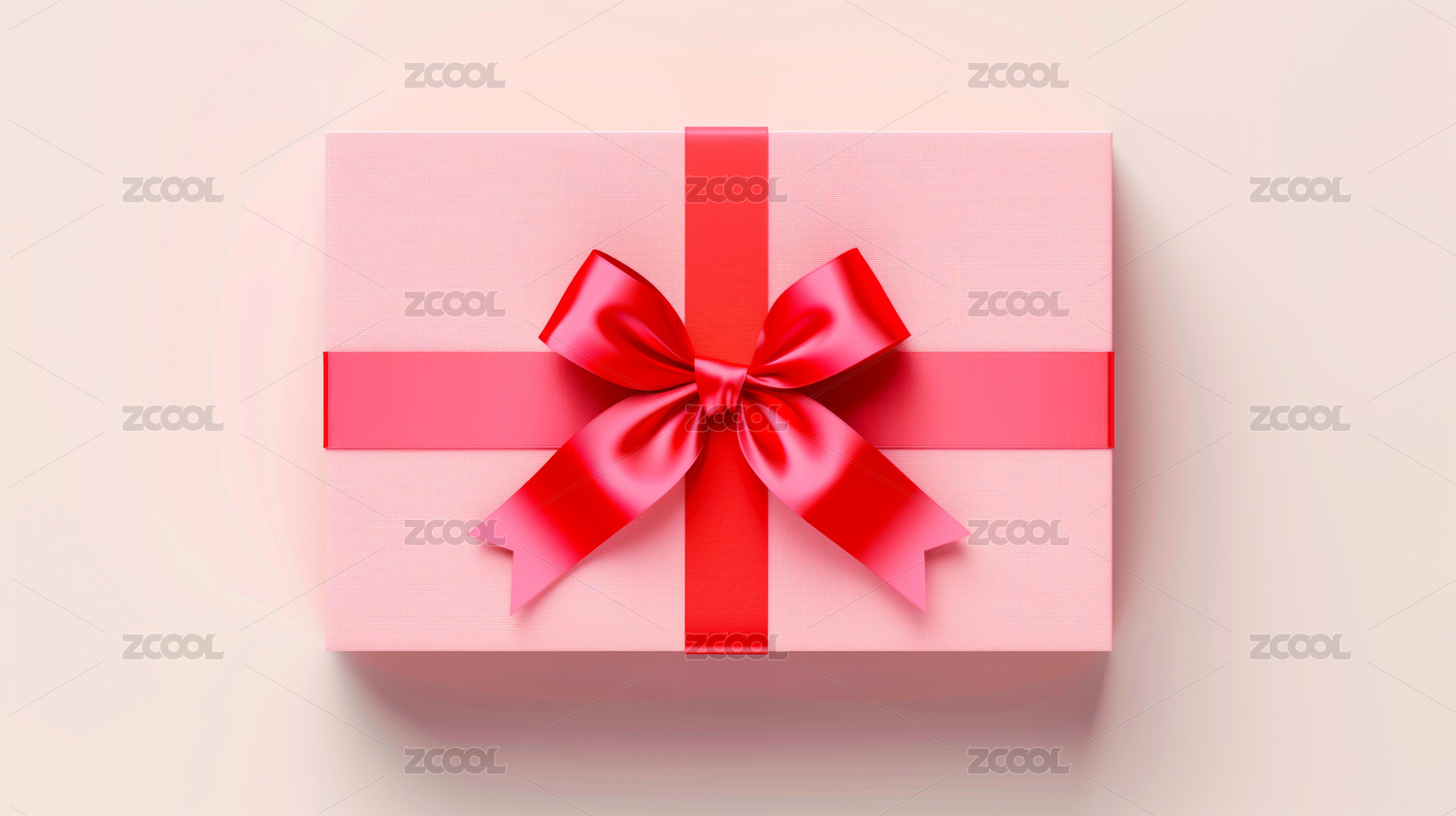 一个粉色礼盒带着蝴蝶结在红色背景上