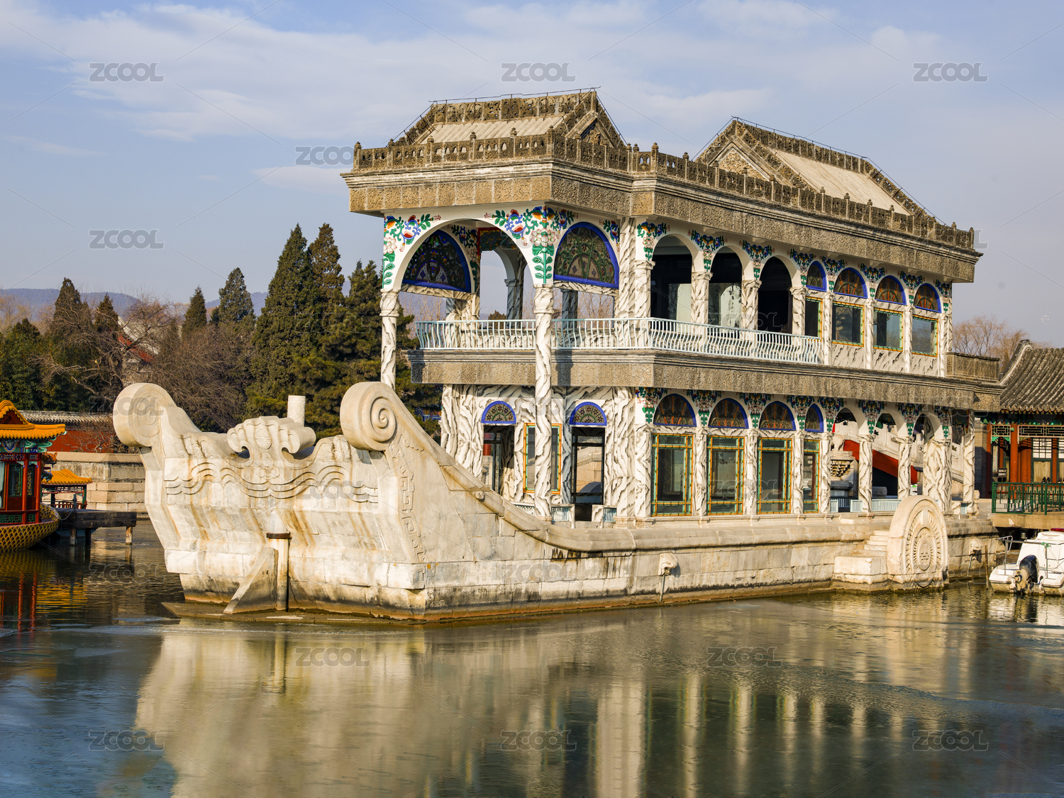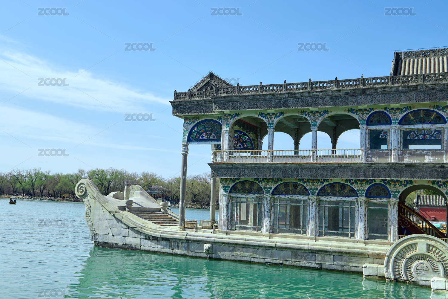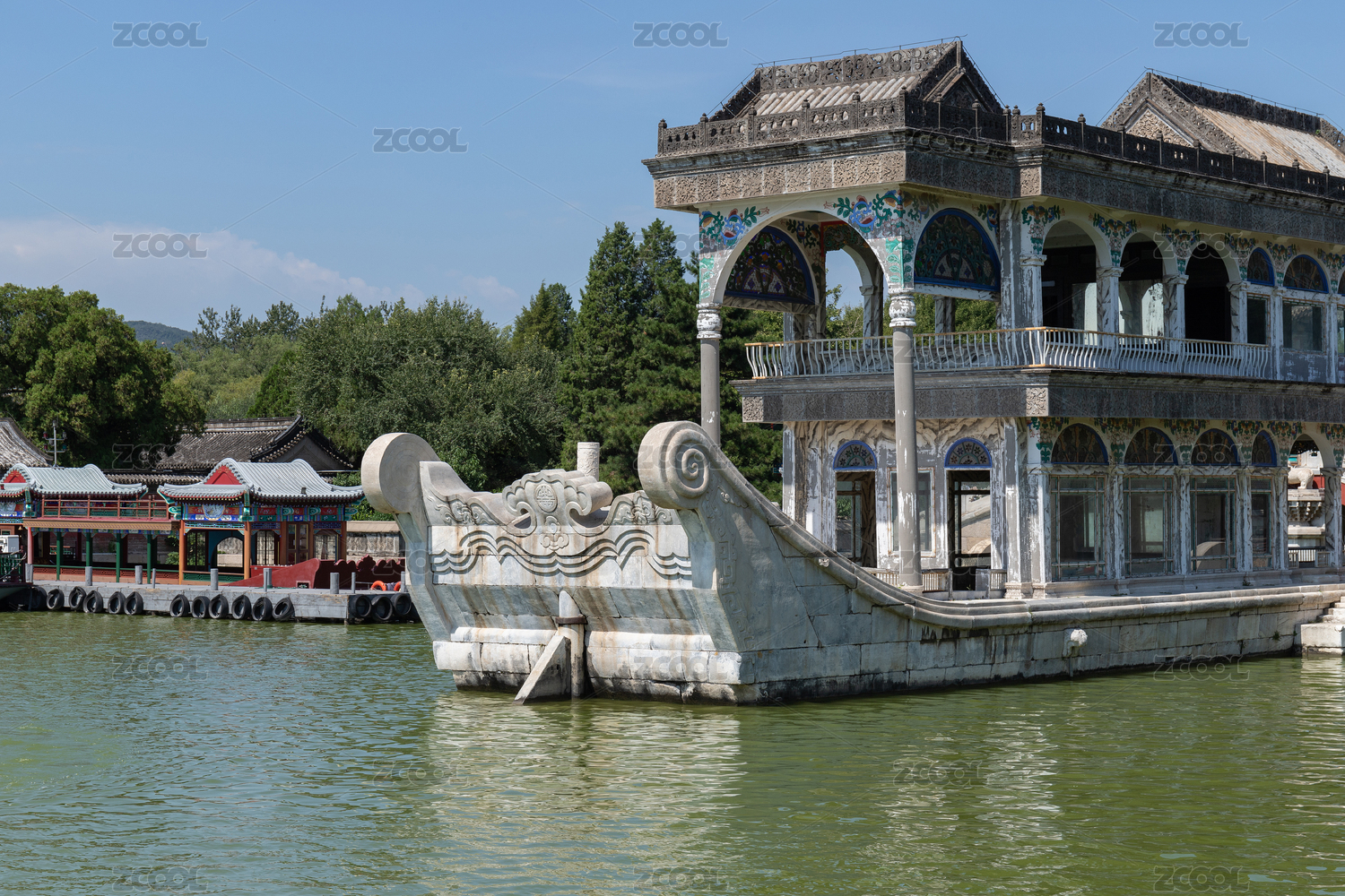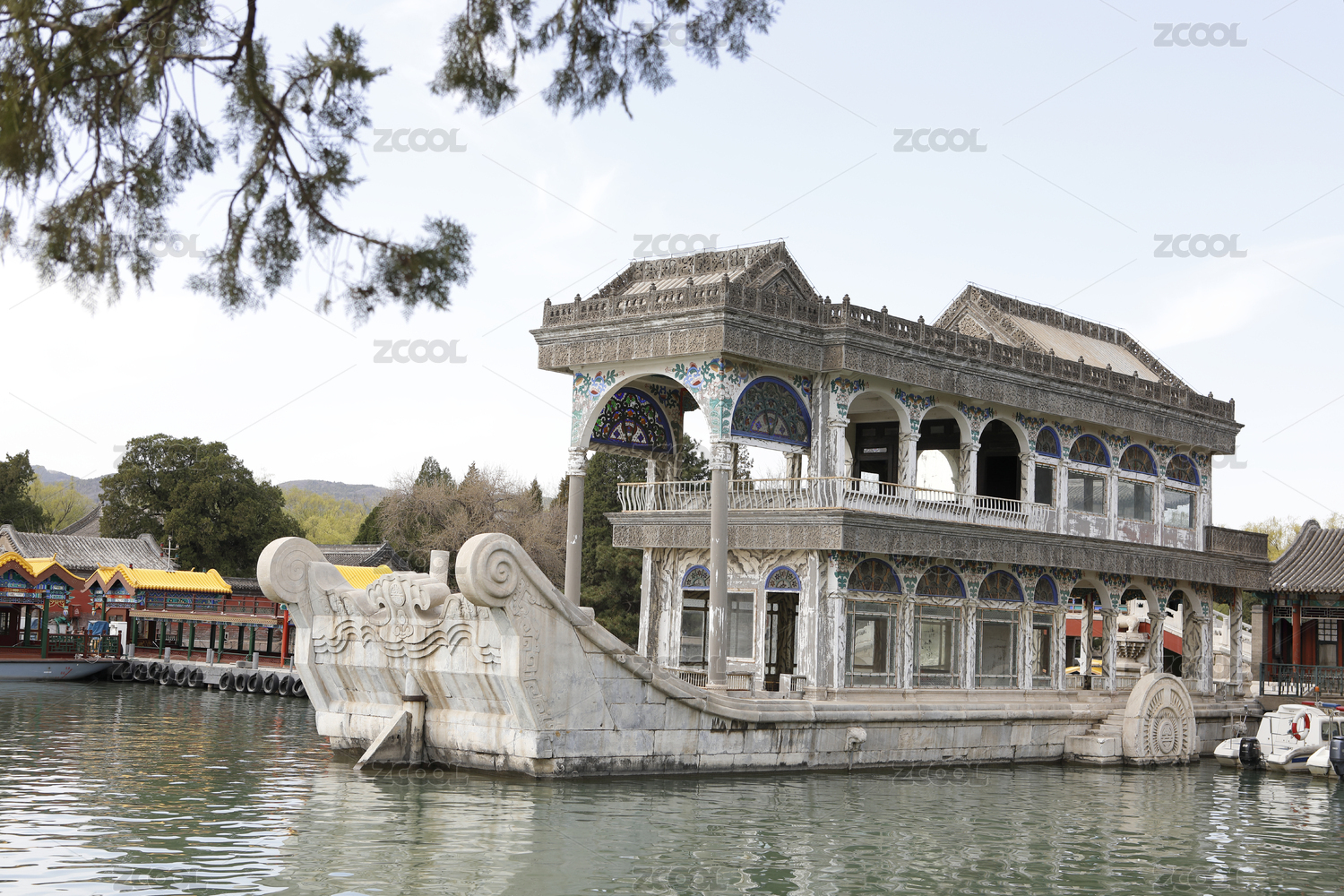 北京,颐和园,石舫,清晏舫,巨石,船体,雕刻,石雕,白色,木结构