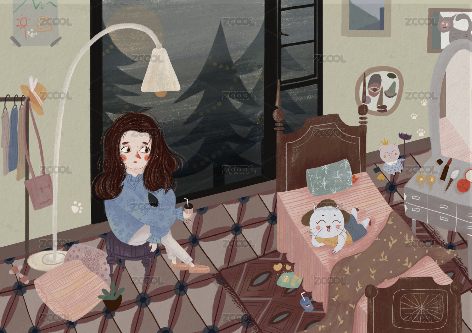 HEYYTGF2020,哭泣,孩子,女孩,抱熊,室内,夜晚,家,害怕,委屈