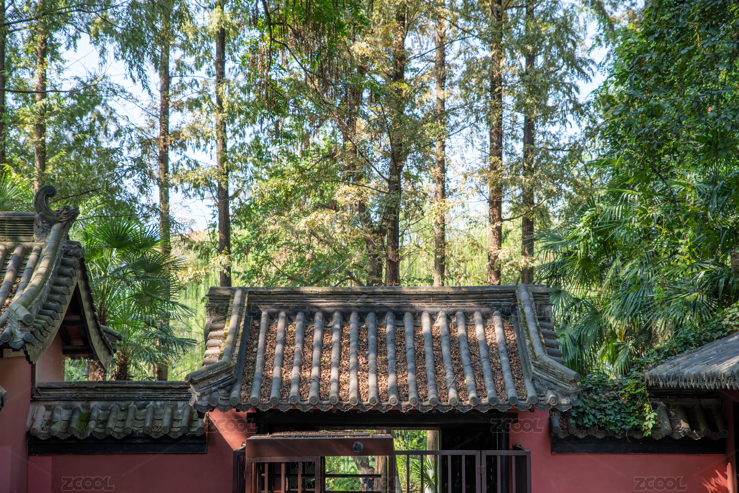 古建筑,蓝天,绿树,古树,柏树,红墙,门,青瓦,中国式,建筑